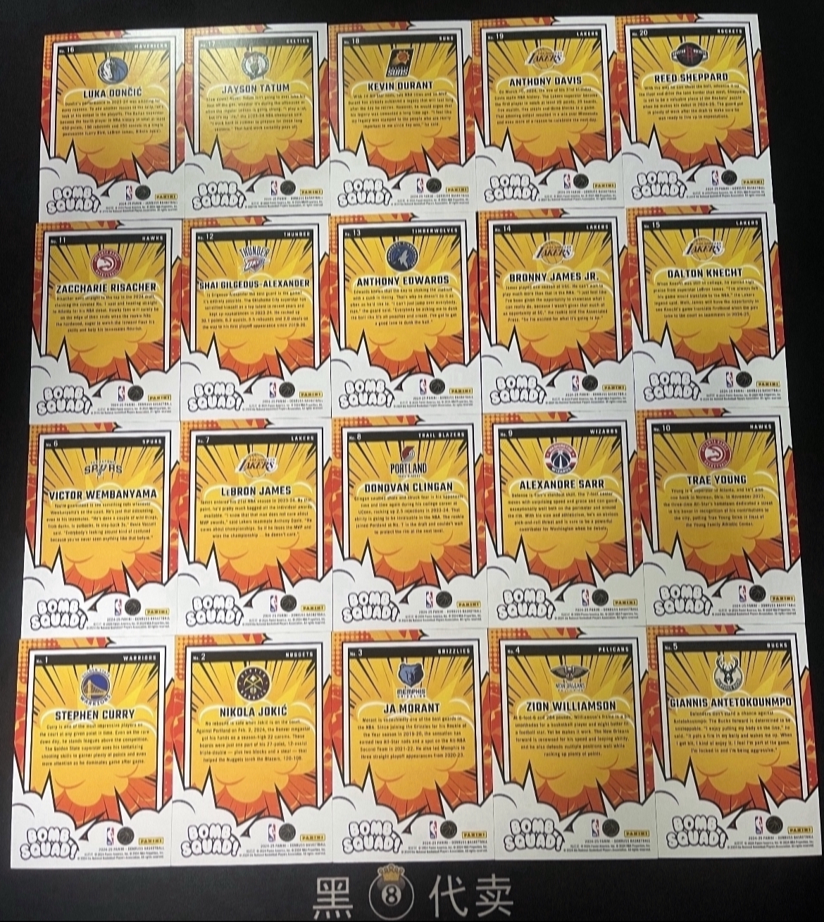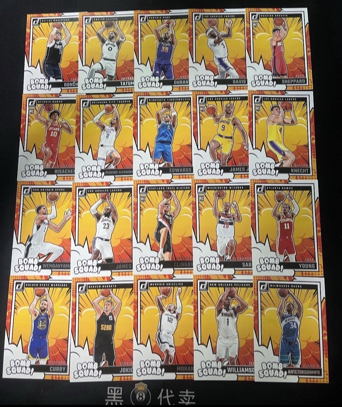 6【黑8代卖】2024-25 Donruss 杜蕾斯系列 库里 约基奇 詹姆斯 塔图姆 文班亚马 东契奇等好人 拆弹小队特卡 base 一套1-20号20张打包出售Lot不保卡品无膜【小红-2】