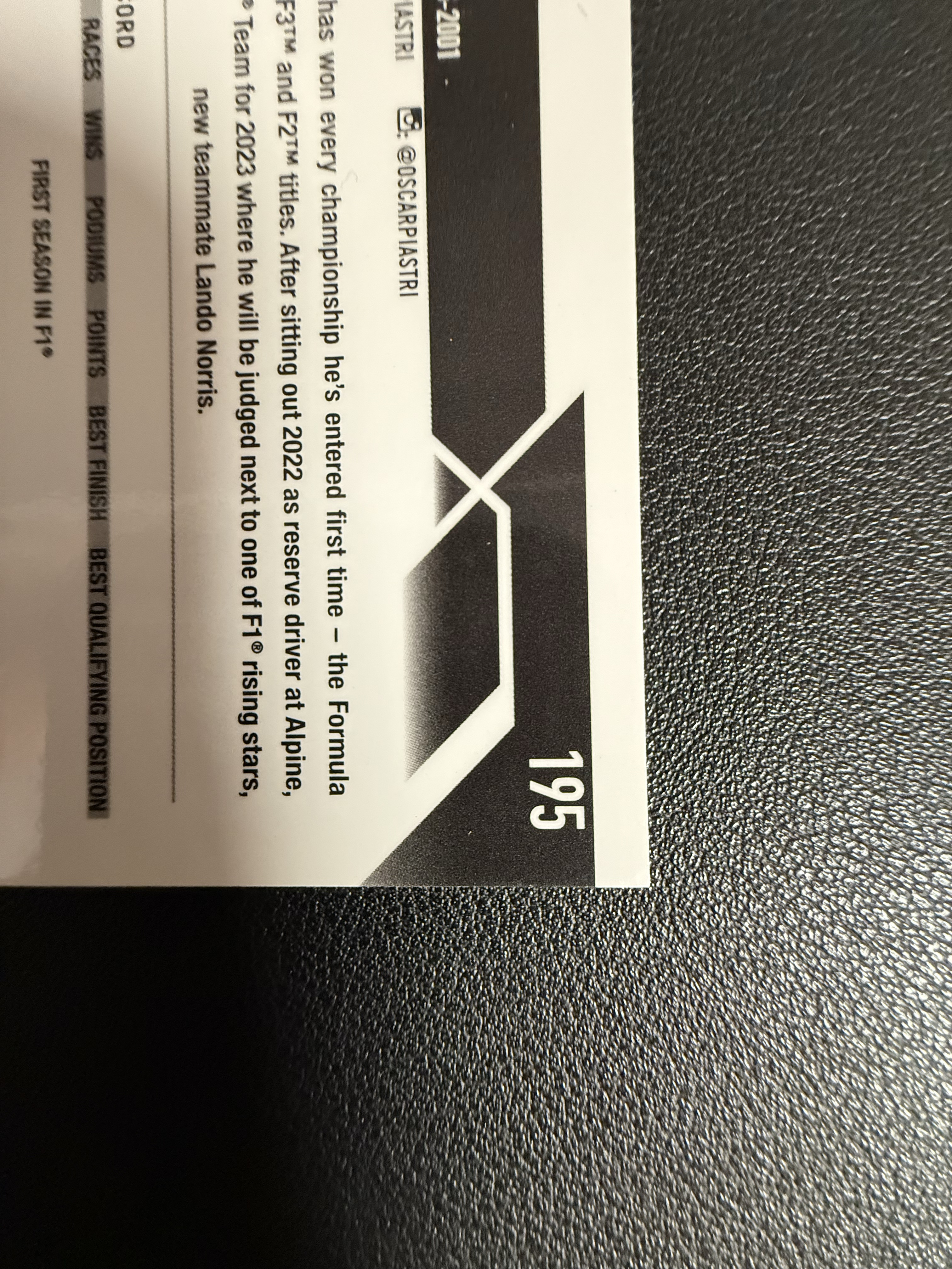 2023 Topps Chrome Oscar Piastri RC 皮亚斯特里 新秀 定妆 金波纹 50编 #195 卡品如图 收藏必备 潜力无限