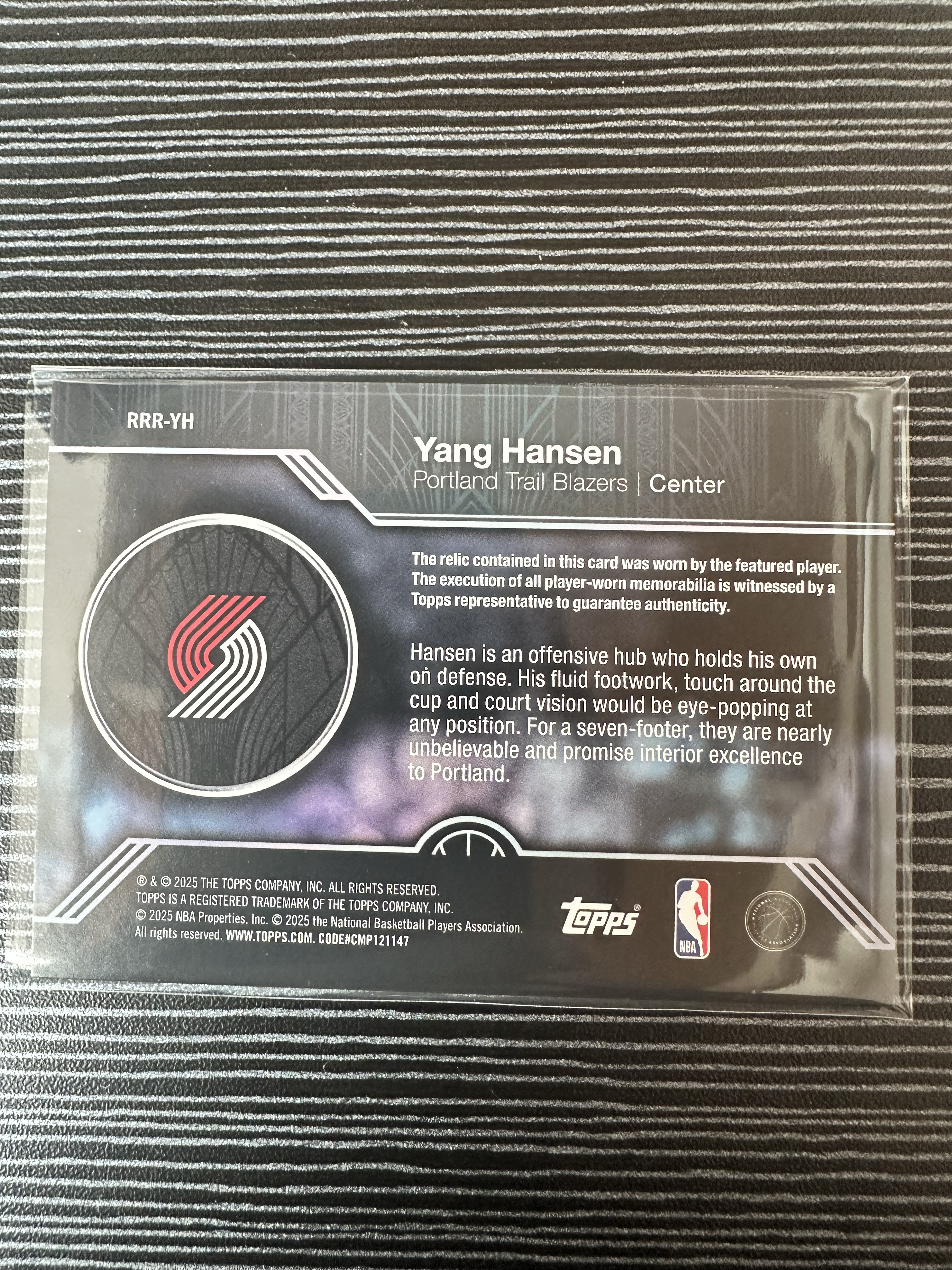 2025 Topps Flagship 杨瀚森 RC新秀 开拓者 Handsome杨 亲穿物料切割 Roundball Remnants特卡