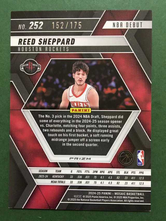 2024-25 Panini Mosaic Reed Sheppard RC 马赛克 新秀 火箭 里德 谢泼德 175编 粉马赛克折 粉折 NBA DEBUT 首秀版base 阿门队友 卡品如图#十四