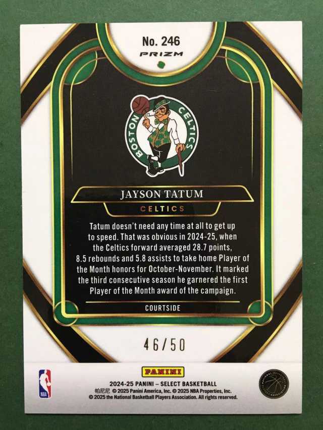 2024-25 Panini Select Jayson Tatum 凯尔特人 杰森 塔图姆 獭兔 50编 绿波纹折 绿折 color Match 三级 3级 base 双子星 总冠军 卡品如图#十四