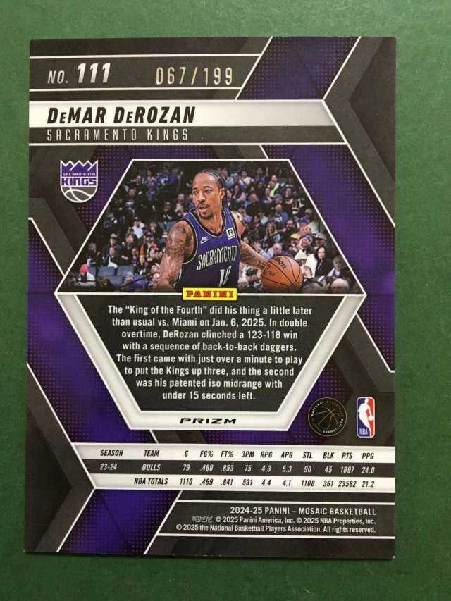 2024-25 Panini Mosaic DeMar DeRozan 马赛克 国王 德玛尔 德罗赞 199编 蓝马赛克折 蓝折 折射 base 猛龙 公牛 马刺 全明星 专收凑套必备 卡品如图#十五