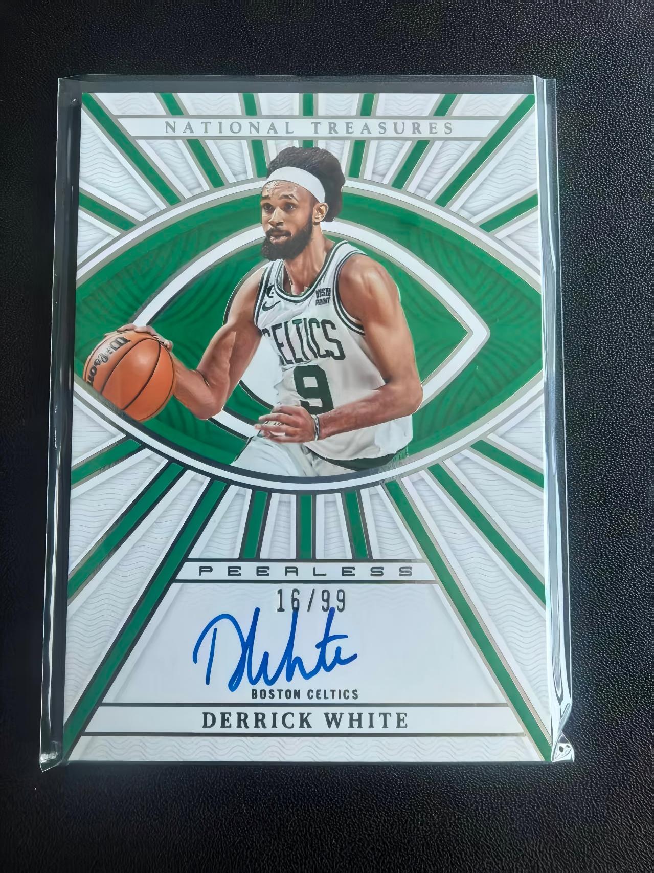 2022-23 Panini National Treasures 国宝系列德里克·怀特 Peerless权势之眼签字卡,限量16/99编,凯尔特人球员,带原装卡膜保护,卡面设计精美,品相如图!