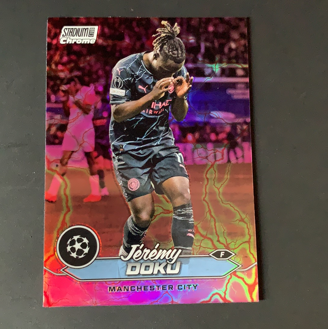 2024 Topps Stadium Club Chrome Jeremy Doku 比利时 多库 曼城 竞技场 粉闪电 卡品如图