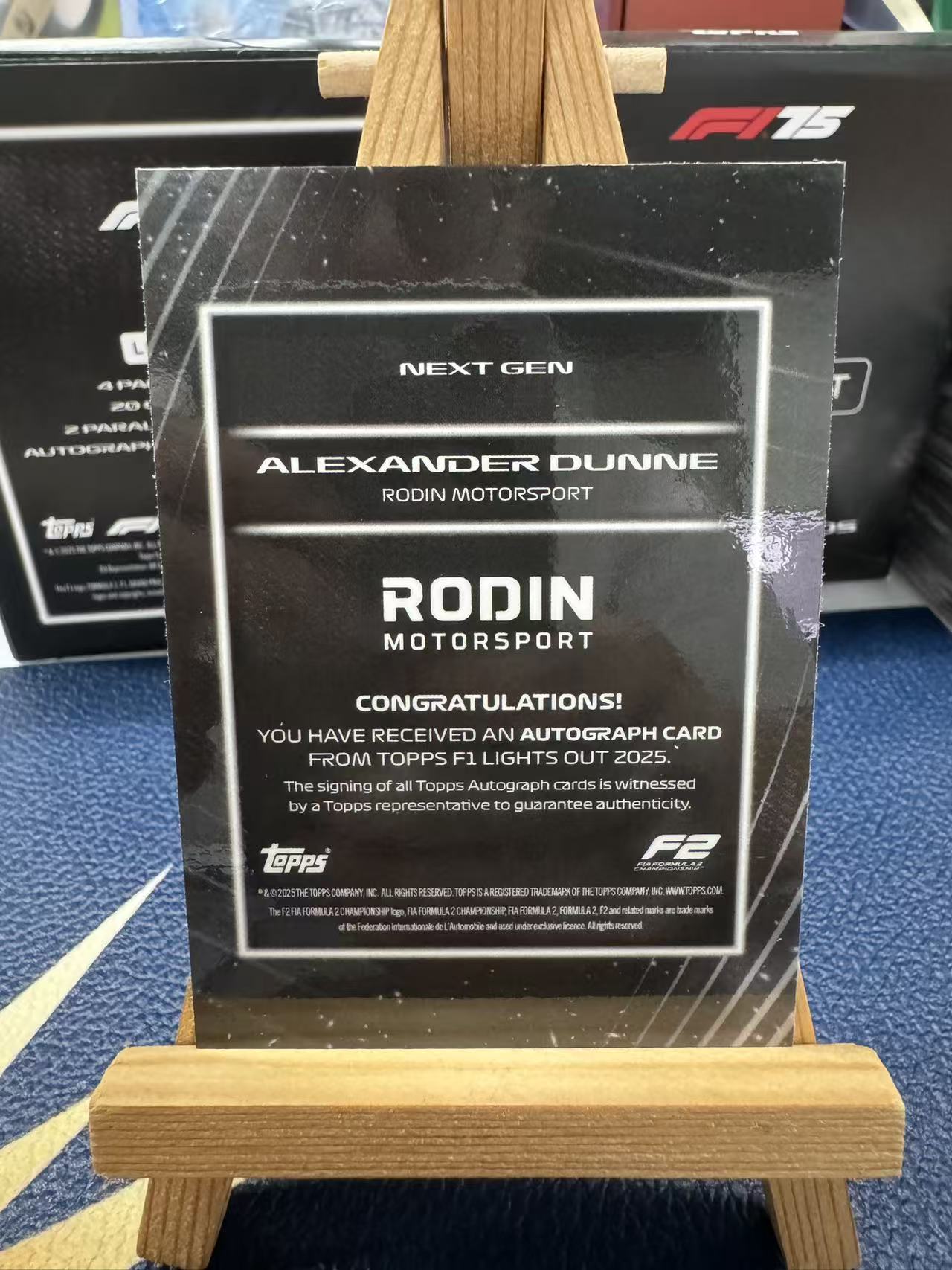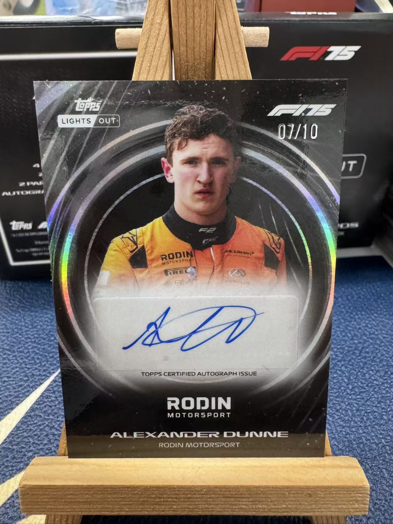 Topps F1 Lights Out 2025熄灯系列Rodin Motorsport车队亚历山大·邓恩签字卡编号07/10,带TOPPS认证签名全新带卡膜保护,品相完好适合F1车迷和收藏爱好者