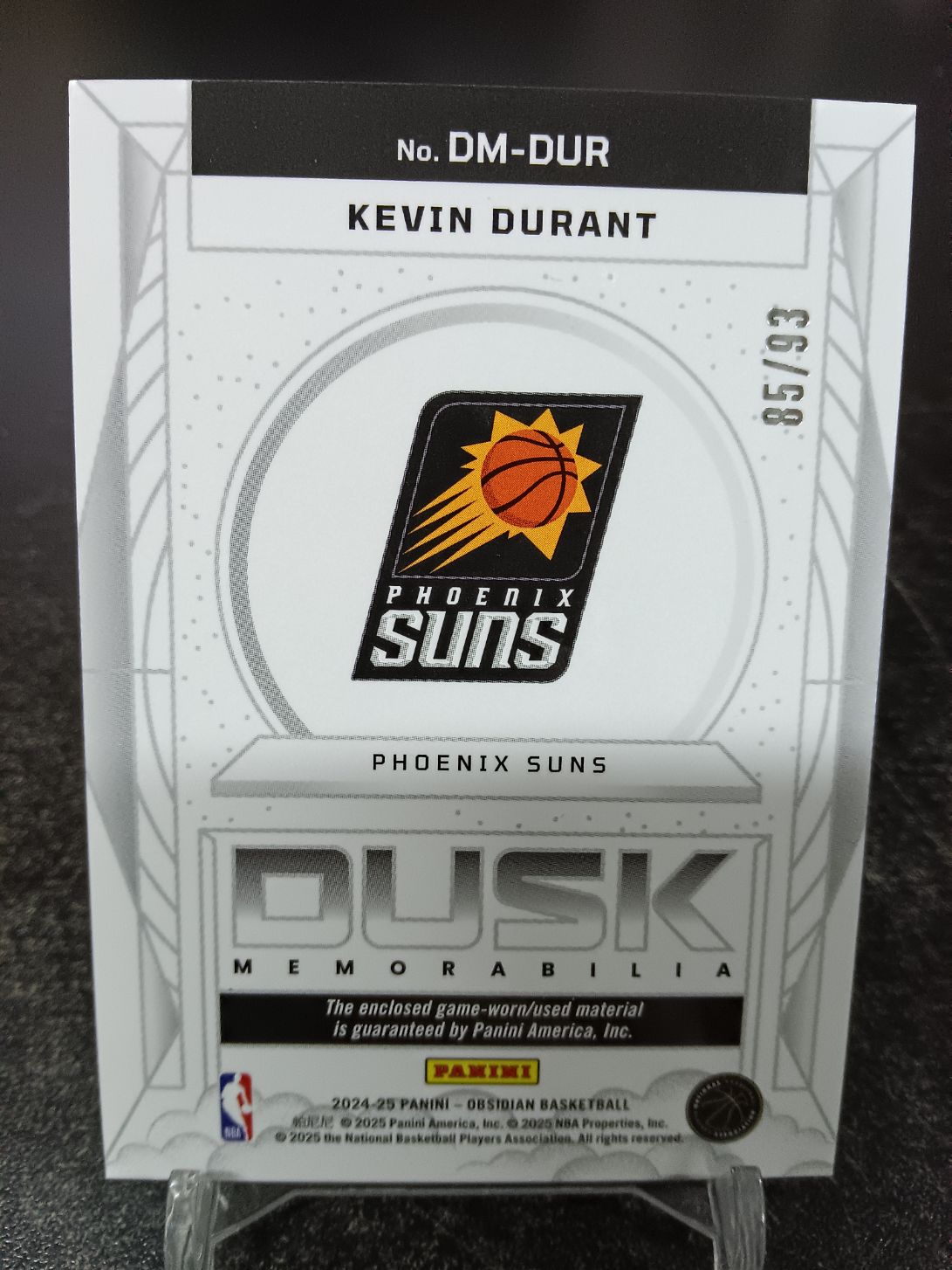 【浩行拍卖 截标预付82%】2024-25 panini Obsidian Kevin Durant 黑曜石 太阳 凯文 杜兰特 死神 折射 球衣 物料 85/93编 专收必备 瑕疵看图「茹稞」1113D07牟