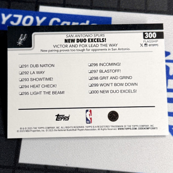 ![[粤己]2025-26 Topps Basketball Flagship 文班亚马 Victor Wembanyama 福克斯 双人 队伍 特卡 蓝碎沙折 Blue 边角微白 马刺 Spurs(俊](https://images.cardhobby.com/CCF47BD269BD4901A13A67397B291E601763020558.jpg)