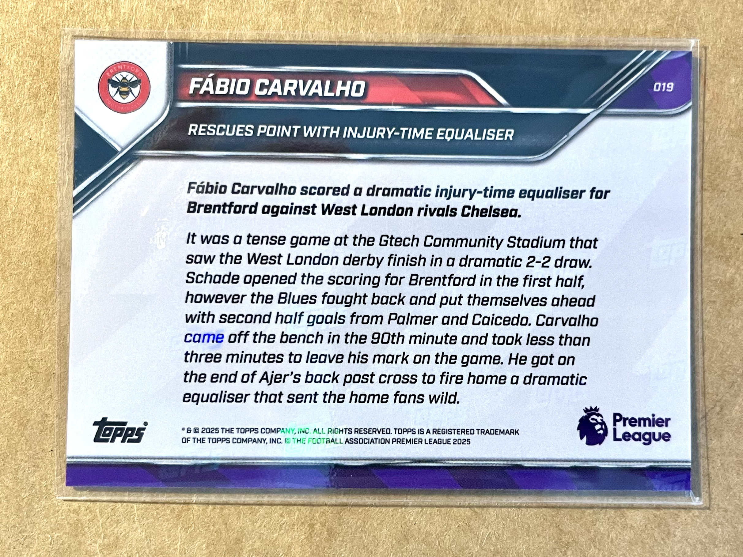 2025 Topps 【蓝矿】 Fábio Carvalho 法比奥·卡瓦略 Topps now系列 英超 布伦特福德 替补出场在伤停补时阶段打入绝平蓝军的关键进球!