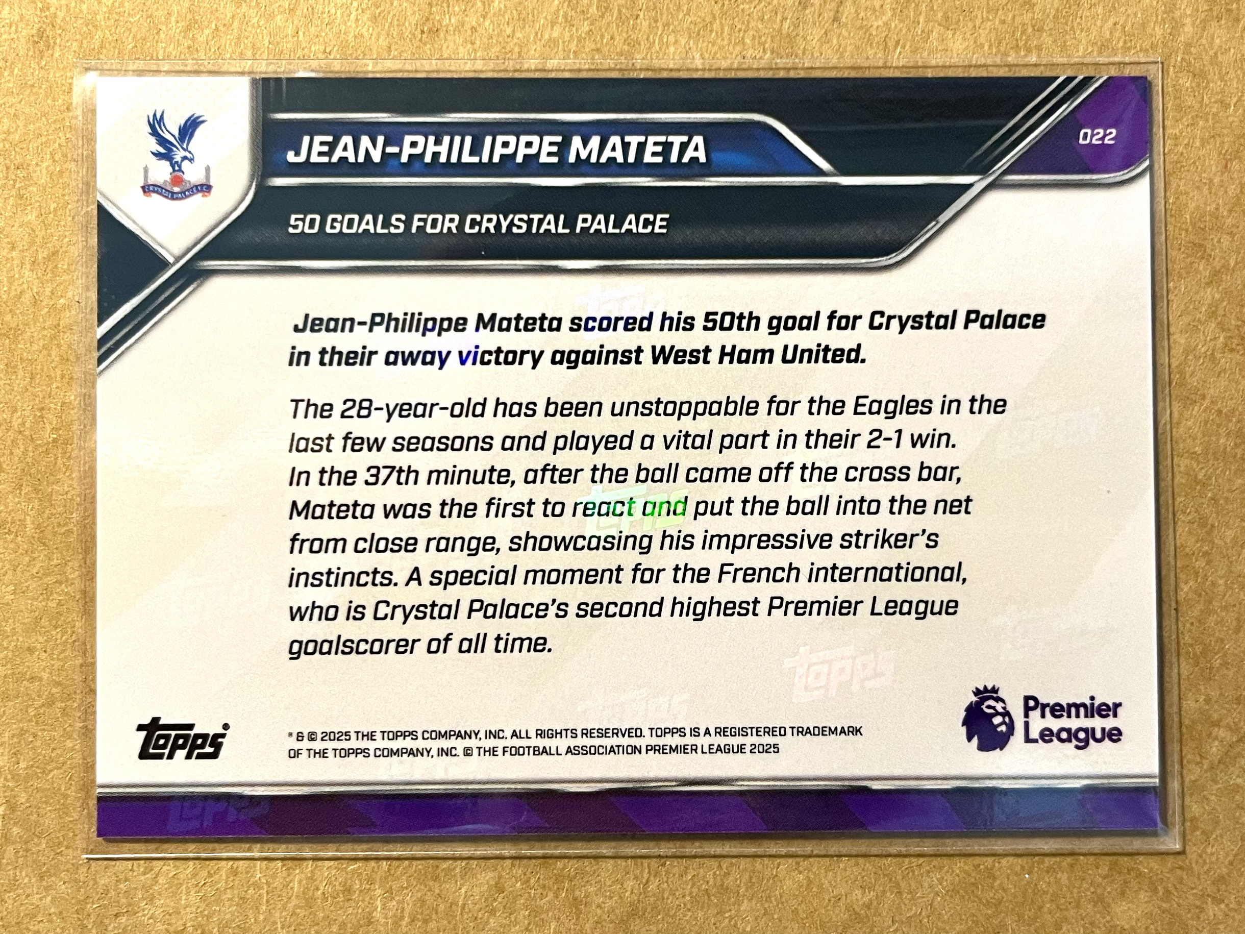 2025 Topps 【蓝矿】 Jean Philippe Mateta 马特塔 Topps now系列 英超 水晶宫 法国超级锋霸为水晶宫打入第50粒进球!