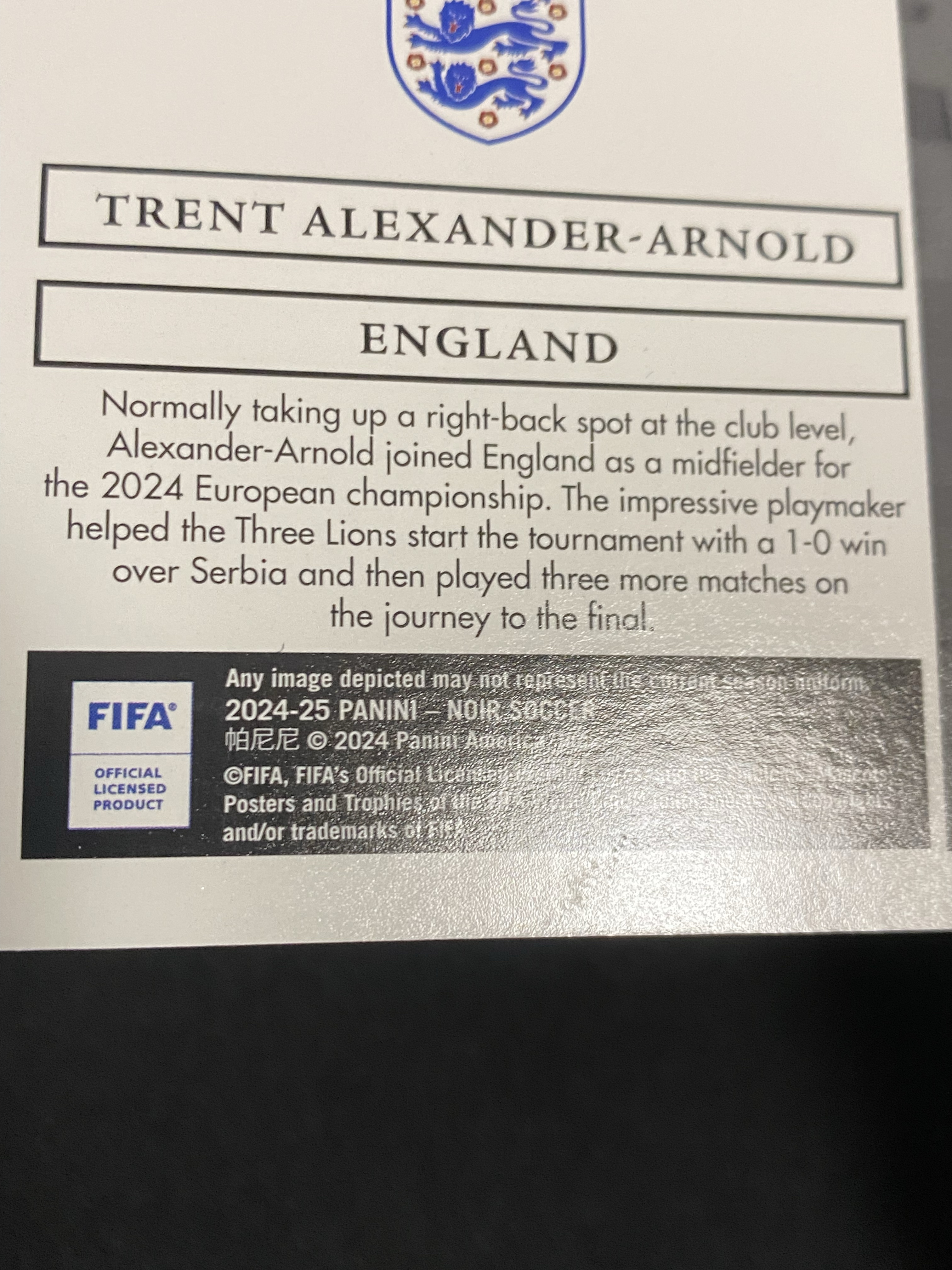 【胡子球手】2024-25 Panini Noir Trent Alexander Arnold 诺尔 英格兰 阿诺德 /49编 横版 闪版base 轻印如图 jh