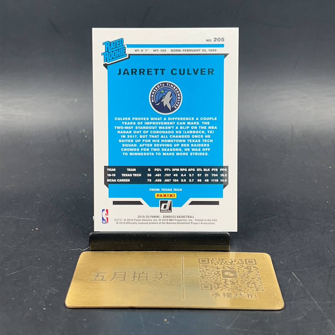2019-20 Panini Donruss Jarrett Culver RC 【五月拍卖 顺丰空运】森林狼 加勒特 卡尔弗 带编 杜蕾斯 99编 迷宫折 折射 卡品如图 xrx x4