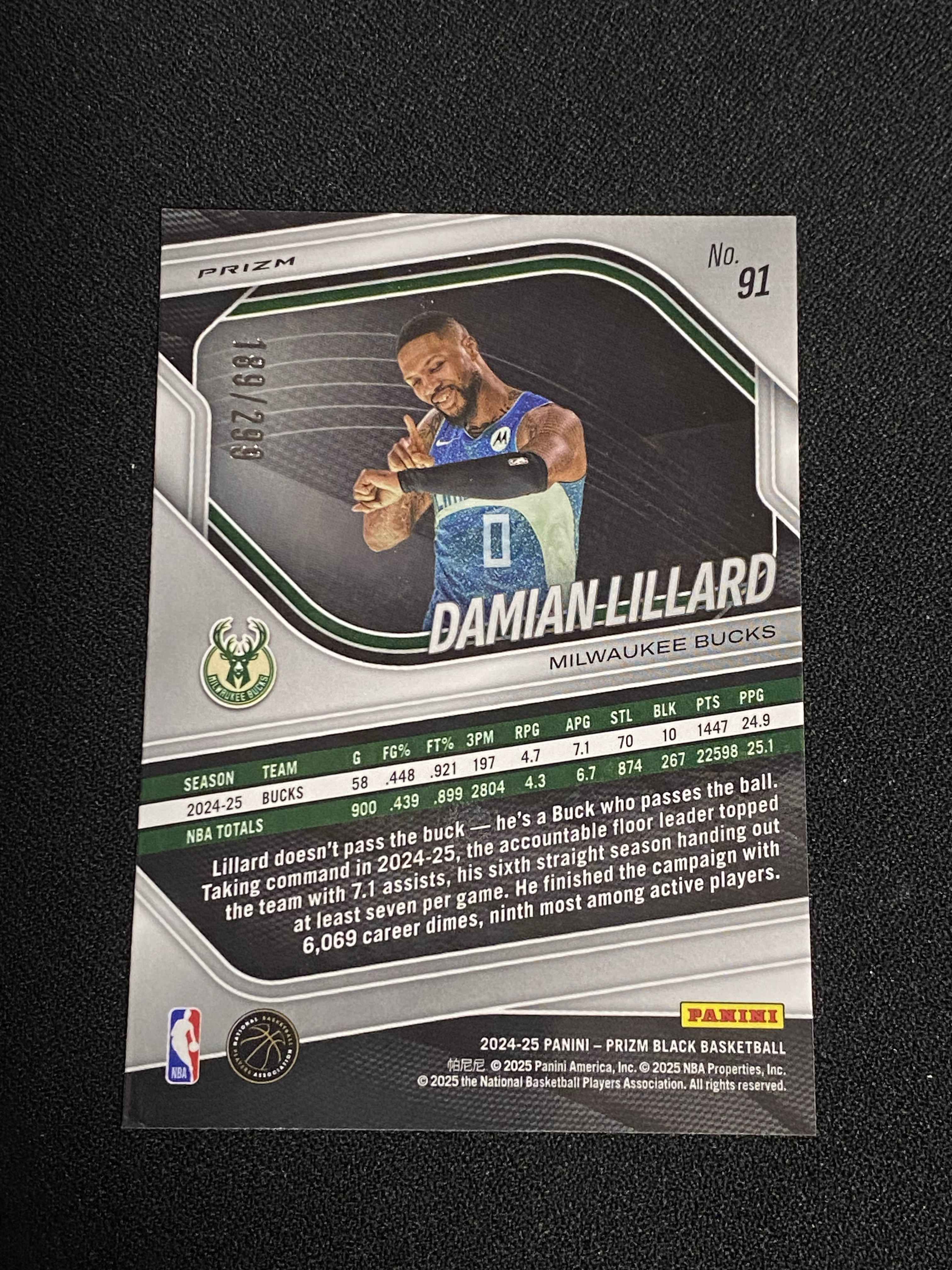 【胡子球手】2024-25 Panini Prizm Black Damian Lillard 雄鹿 利拉德 利指导 /299编 红折 招牌动作选图 jh