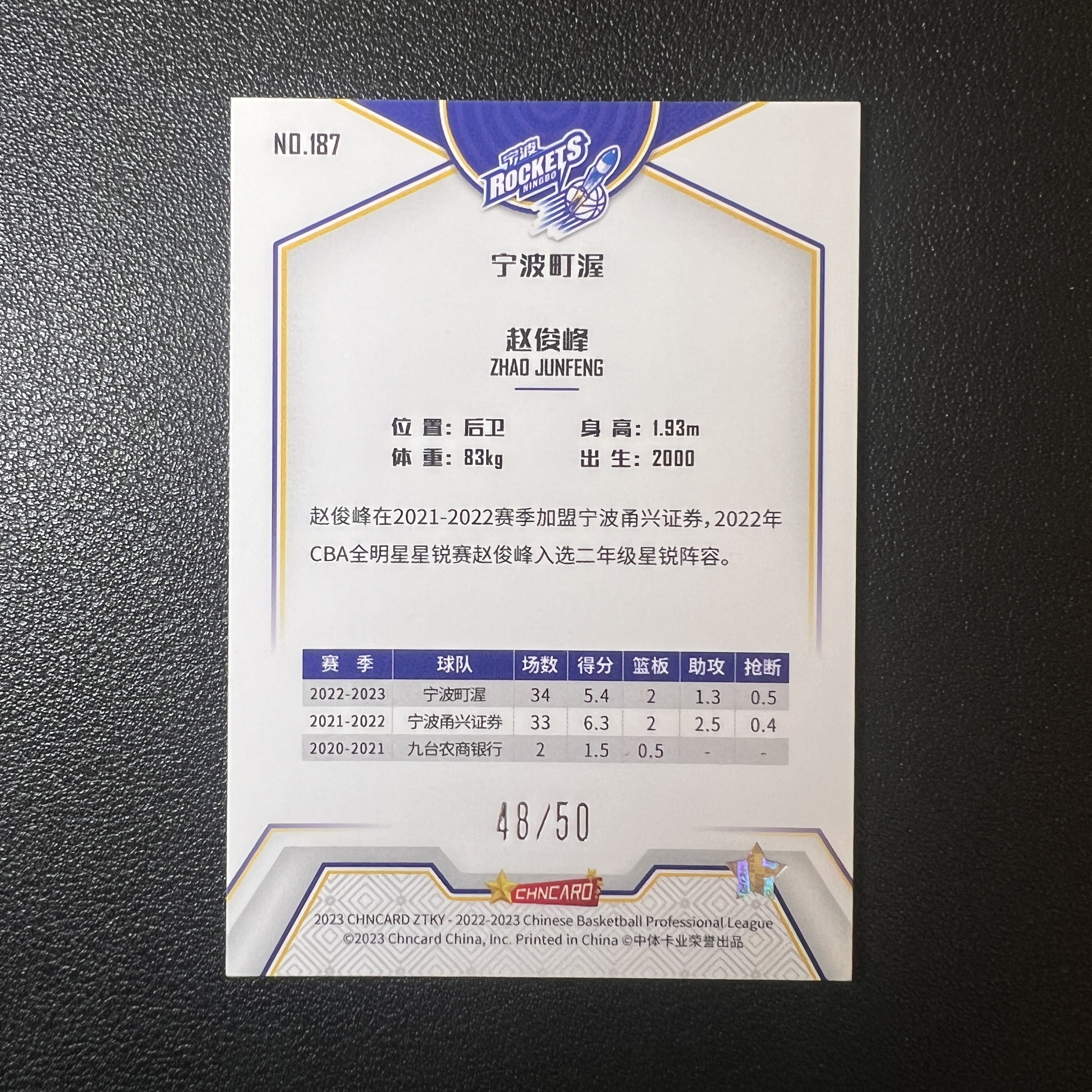 2023 中体卡业 chncard ztky 赵俊峰 篮球 cba 红折射 50编 轻印-SY5343
