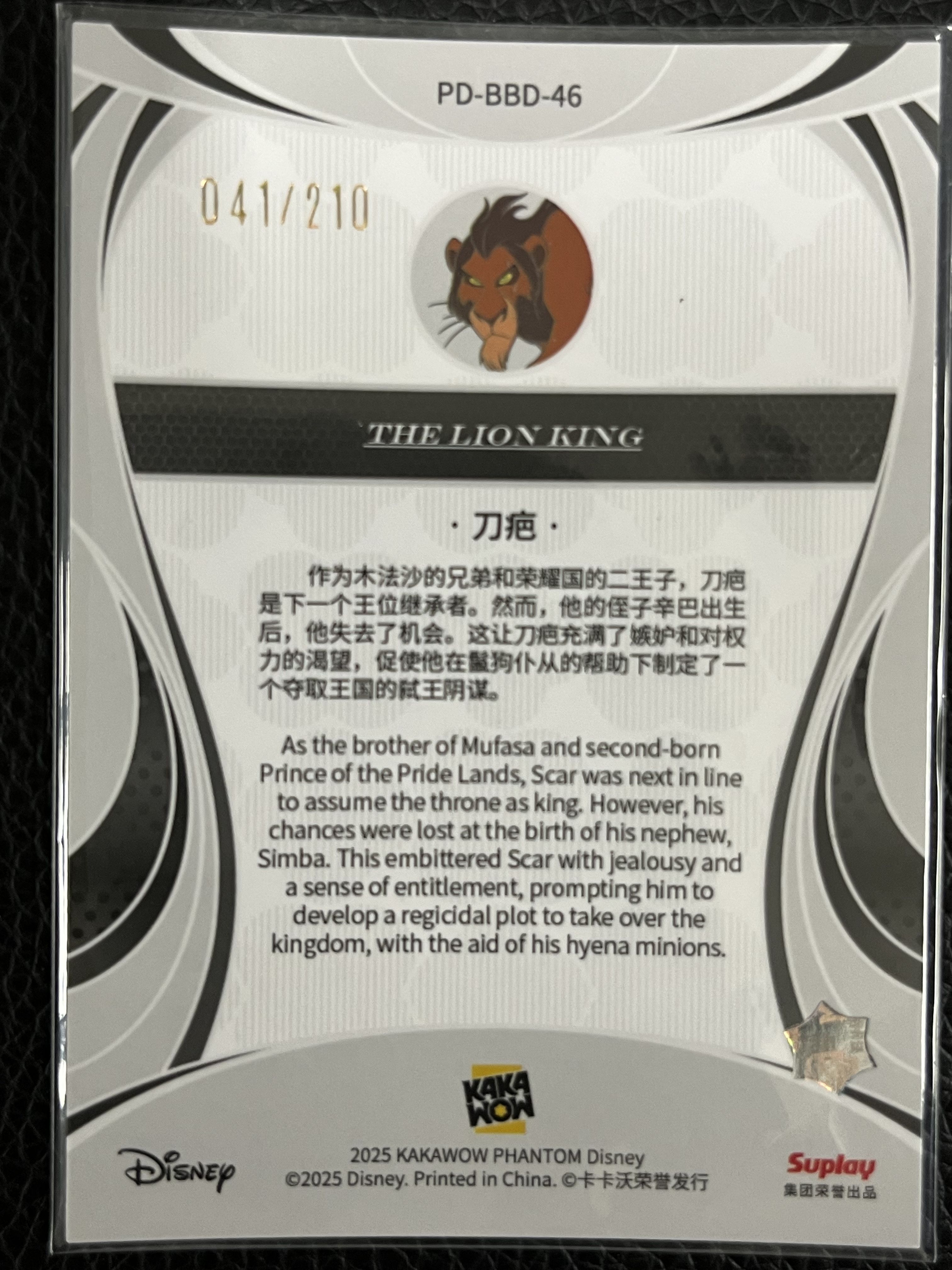 卡卡沃 2025 KAKAWOW PHANTOM 迪士尼系列收藏卡 基础卡-波点折 雯H(13B)41/210编 卡号46 刀疤 Scar