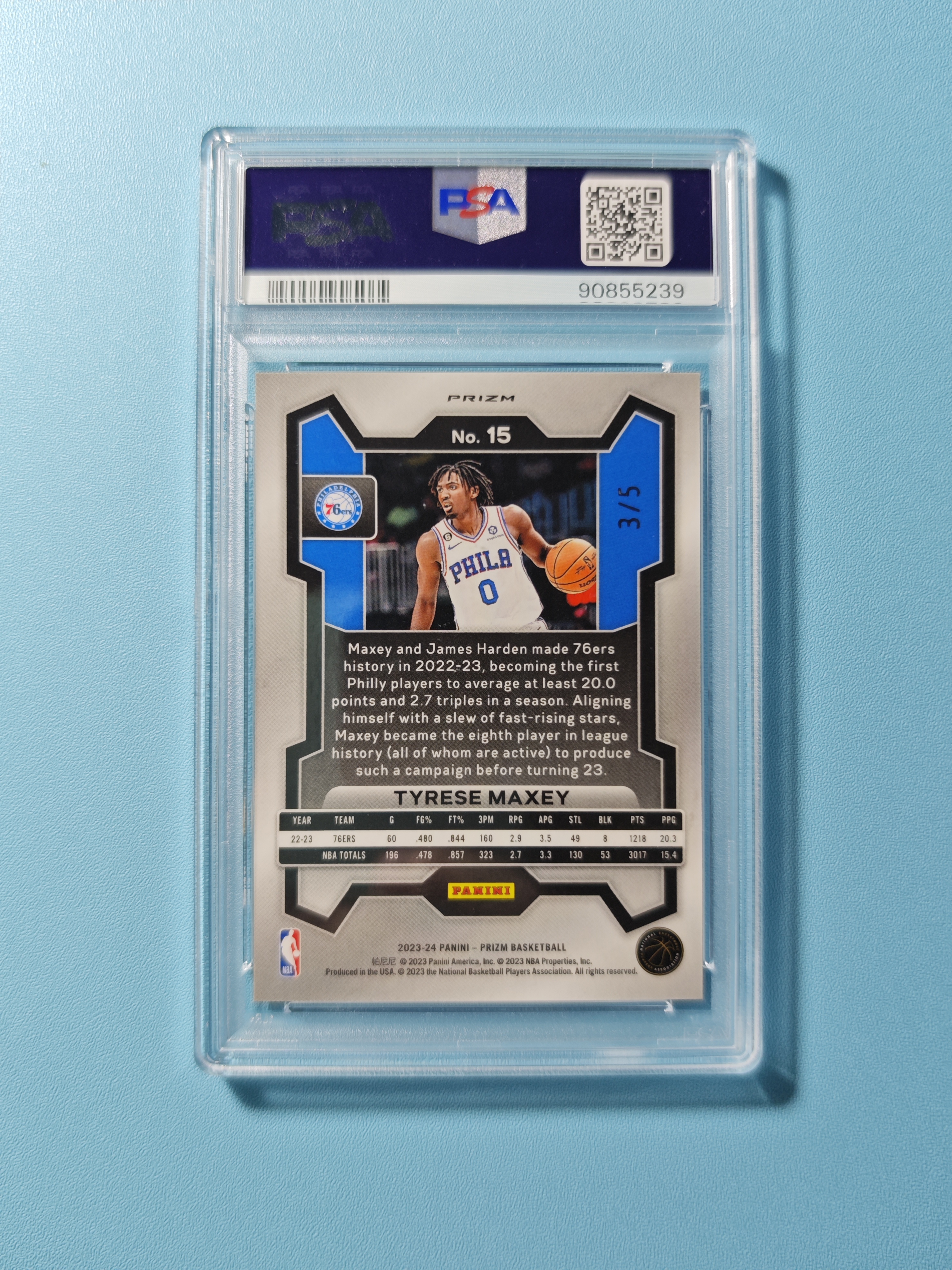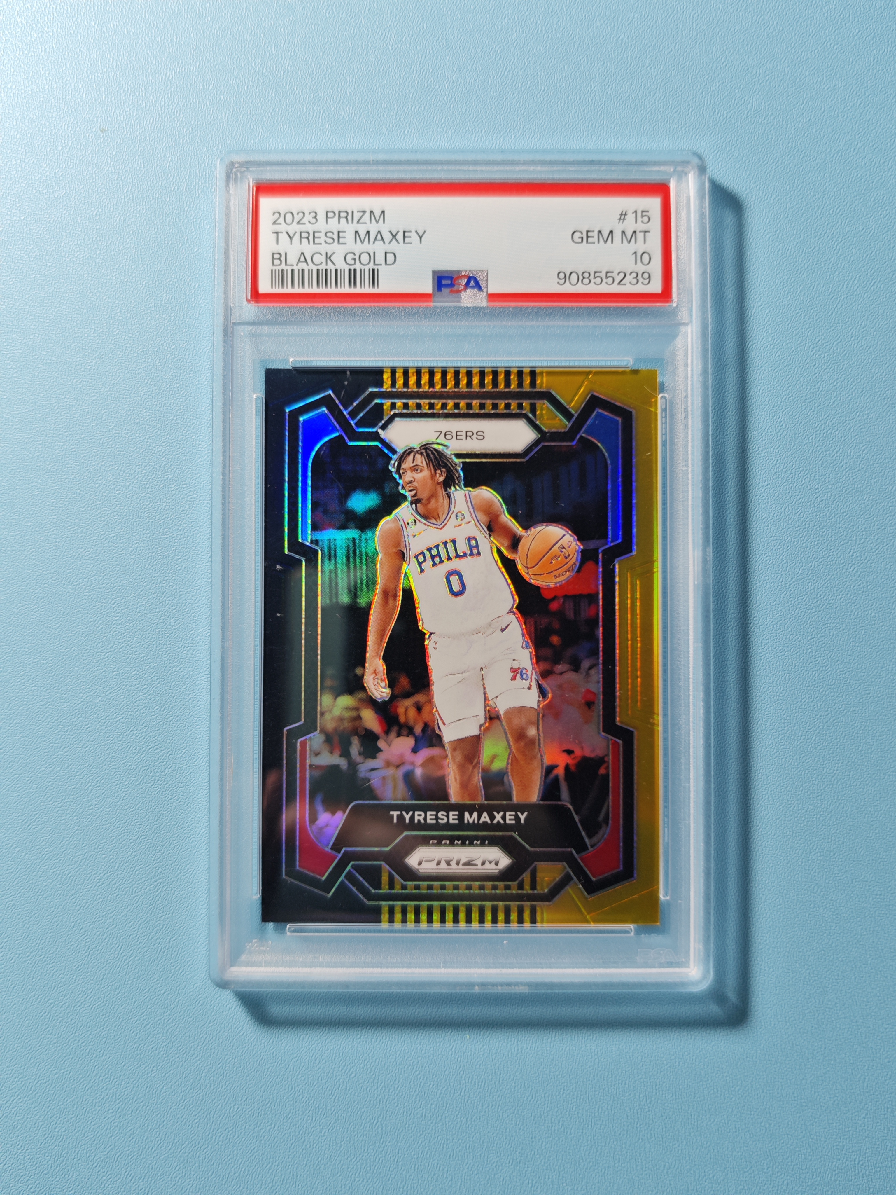 2023-24 Panini Prizm Tyrese Maxey #15 PSA10【咔嚓拍卖】 76人 马克西 黑金折/5编 大热凑套专收必备皮娜