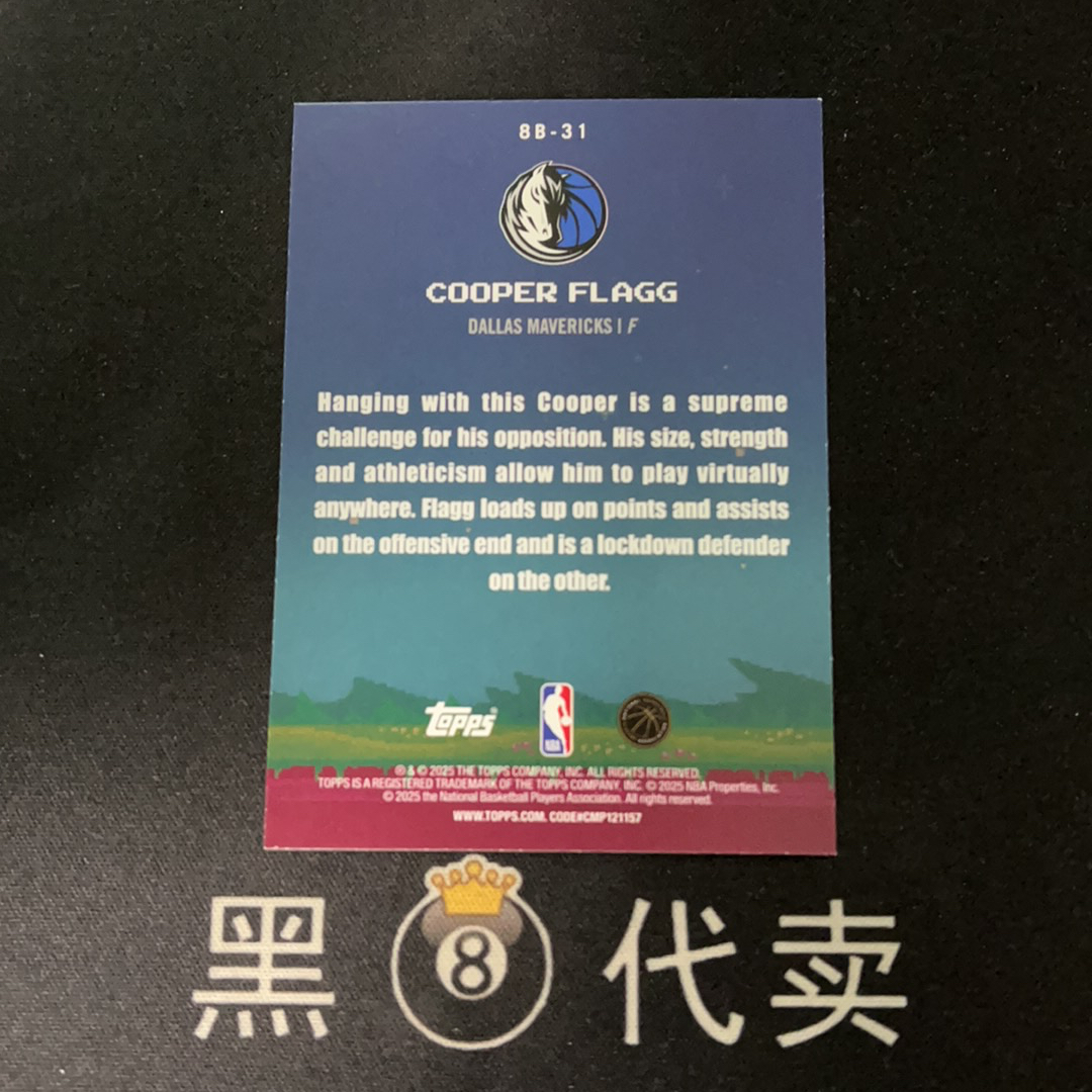 39【黑8代卖】2025 Topps系列 独行侠 Cooper Flagg 库珀 弗拉格 RC 新秀 像素 特卡 base 状元秀 未来大涨 卡品如图【CY华】