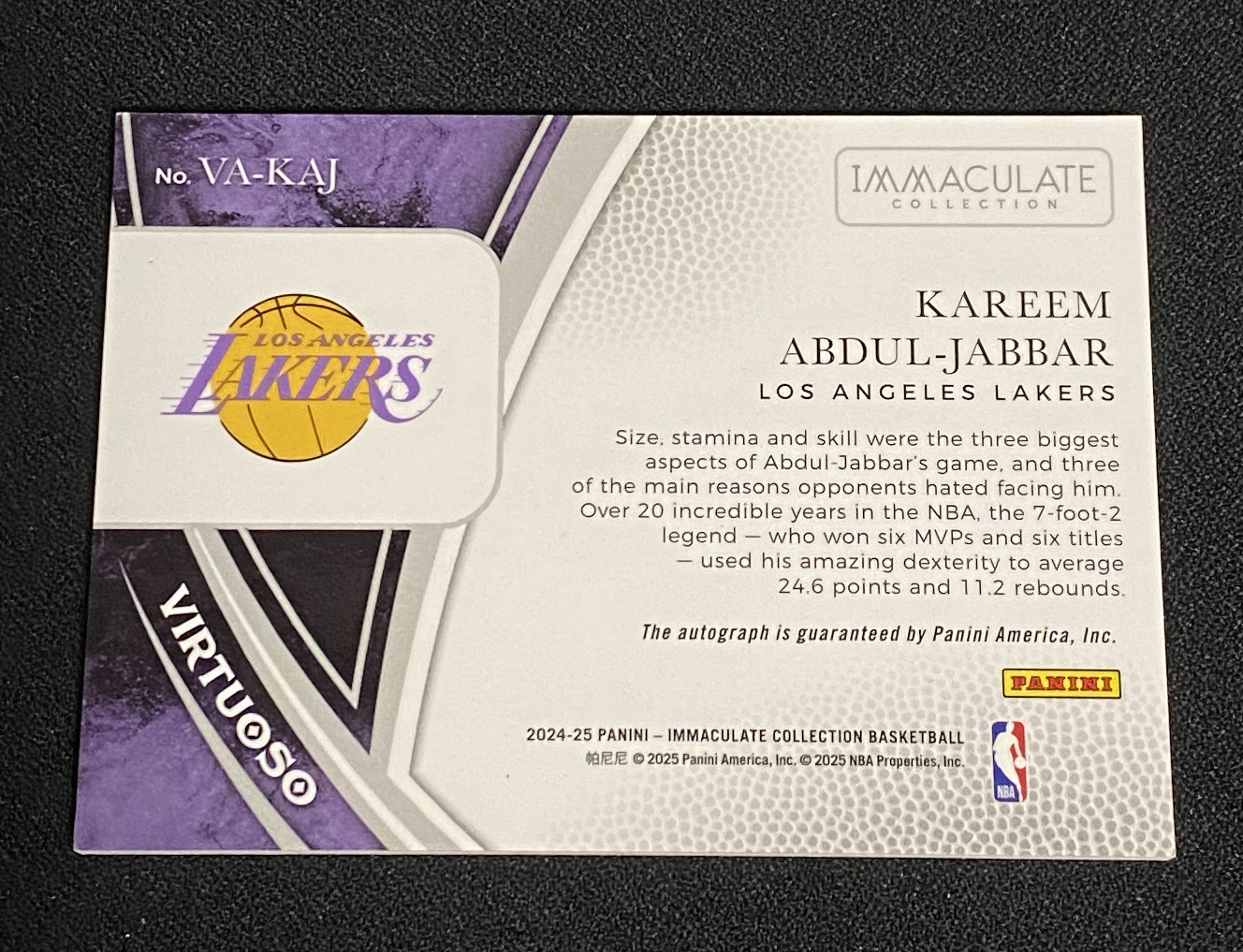 【胡子球手】2024-25 Panini Immaculate Kareem Abdul-Jabbar 湖人 天勾 贾巴尔 /49编 金版 Virtuoso 卡签 签字 轻印如图 jh