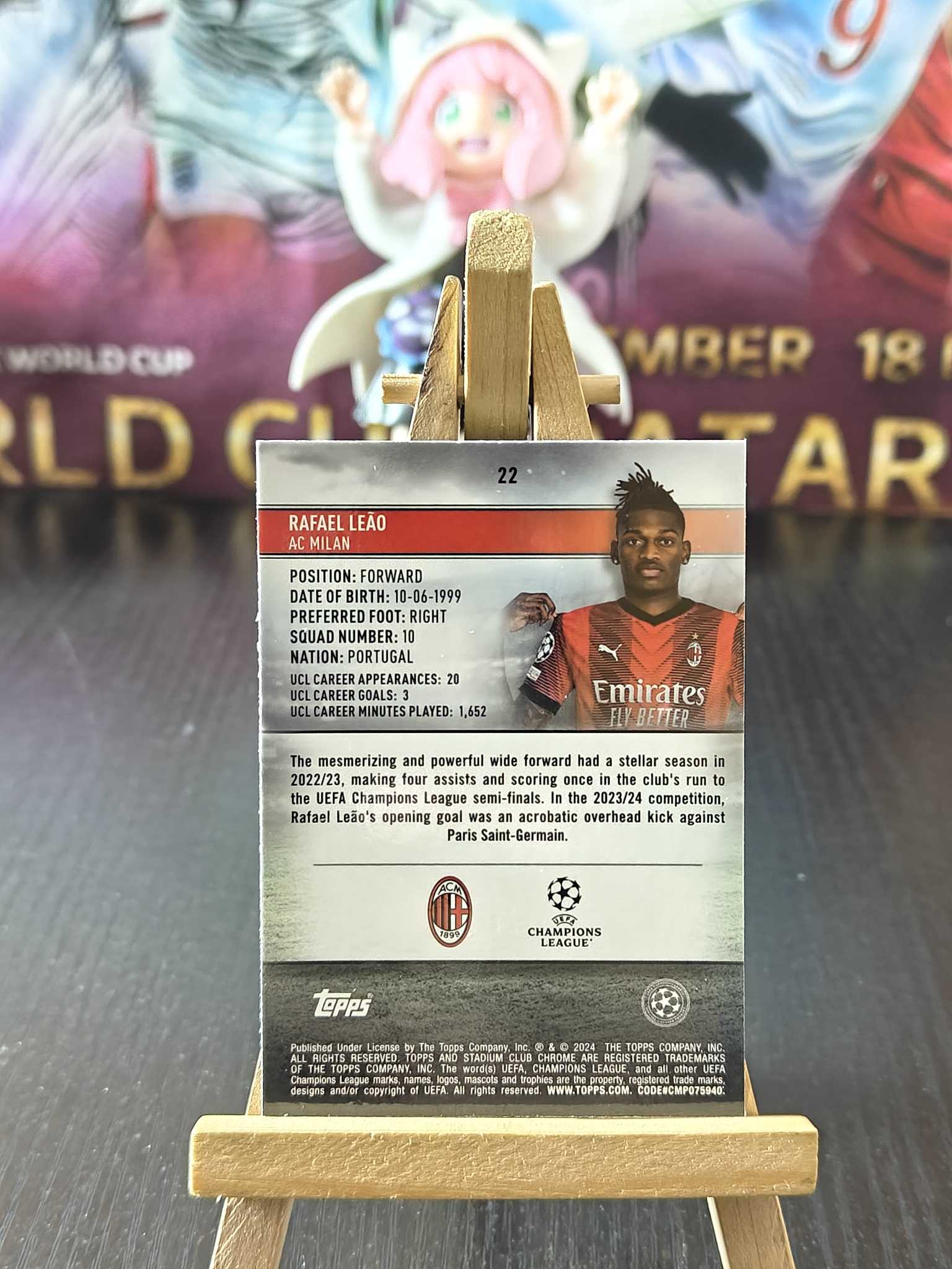 2024 Topps Stadium Club Chrome Rafael Leao 欧冠 竞技场 AC米兰 拉菲尔 莱奥 葡萄牙 绿波纹折 042/250编 卡品如图 收藏必备