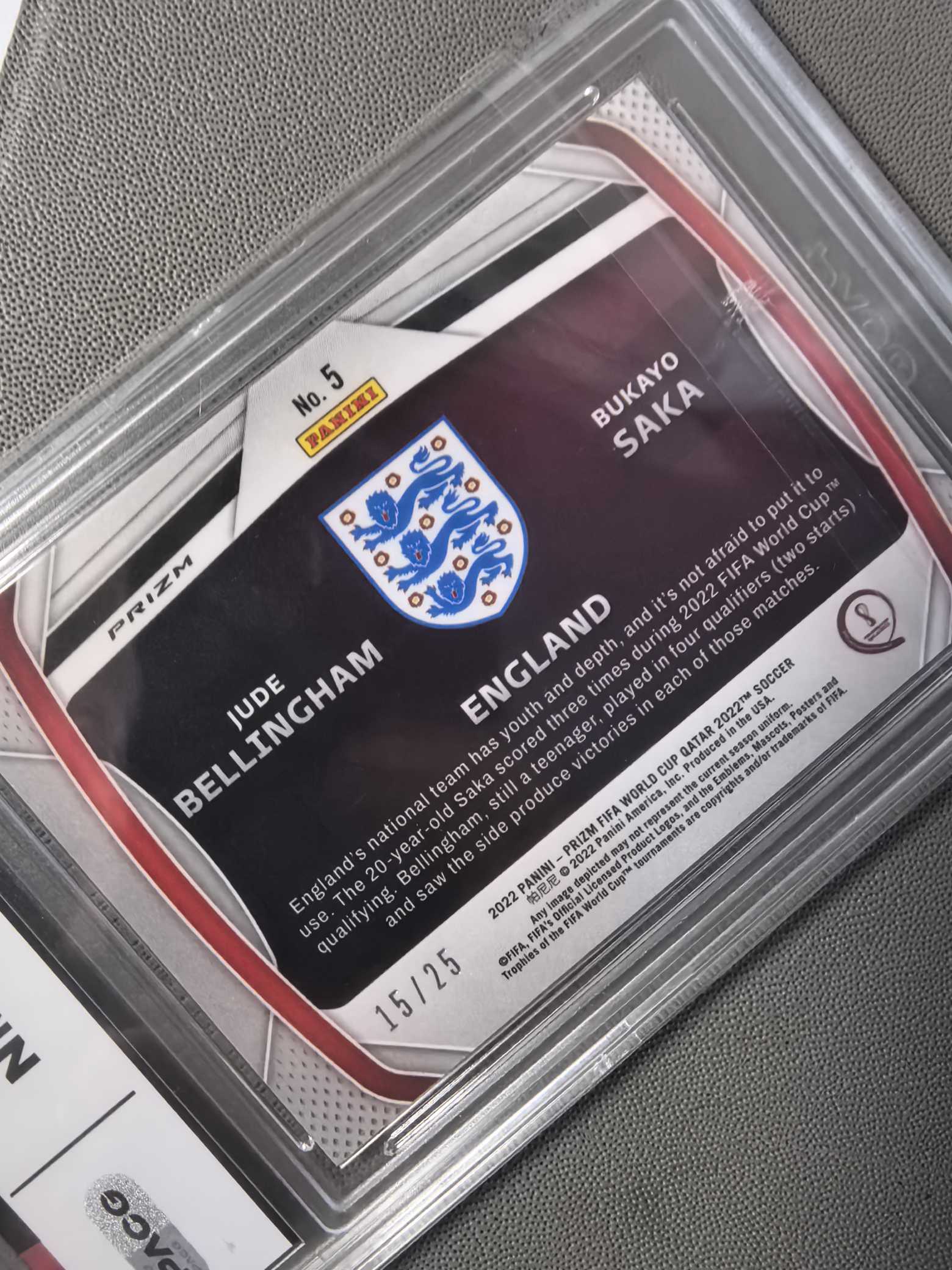2022 Prizm 世界杯 英格兰 贝林厄姆 萨卡 世界杯PZ 低编 限量 橙折 折射 15/25编 双人连线特卡 pacg8分 可博psa9+