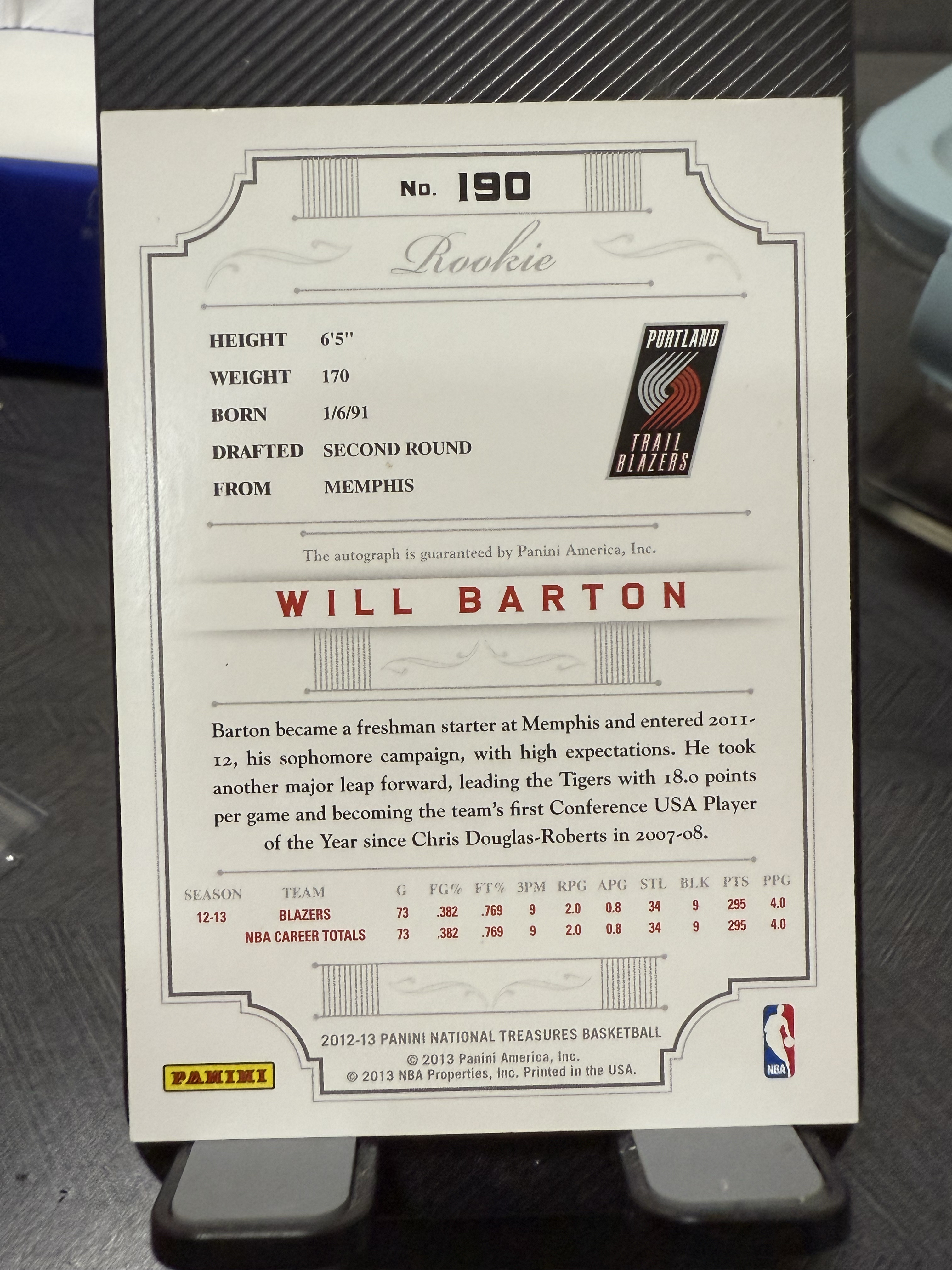 2012-13 Panini National Treasures Will Barton 国宝 开拓者 威尔 巴顿 新秀 RC 签字 卡签 /99编 微瑕如图