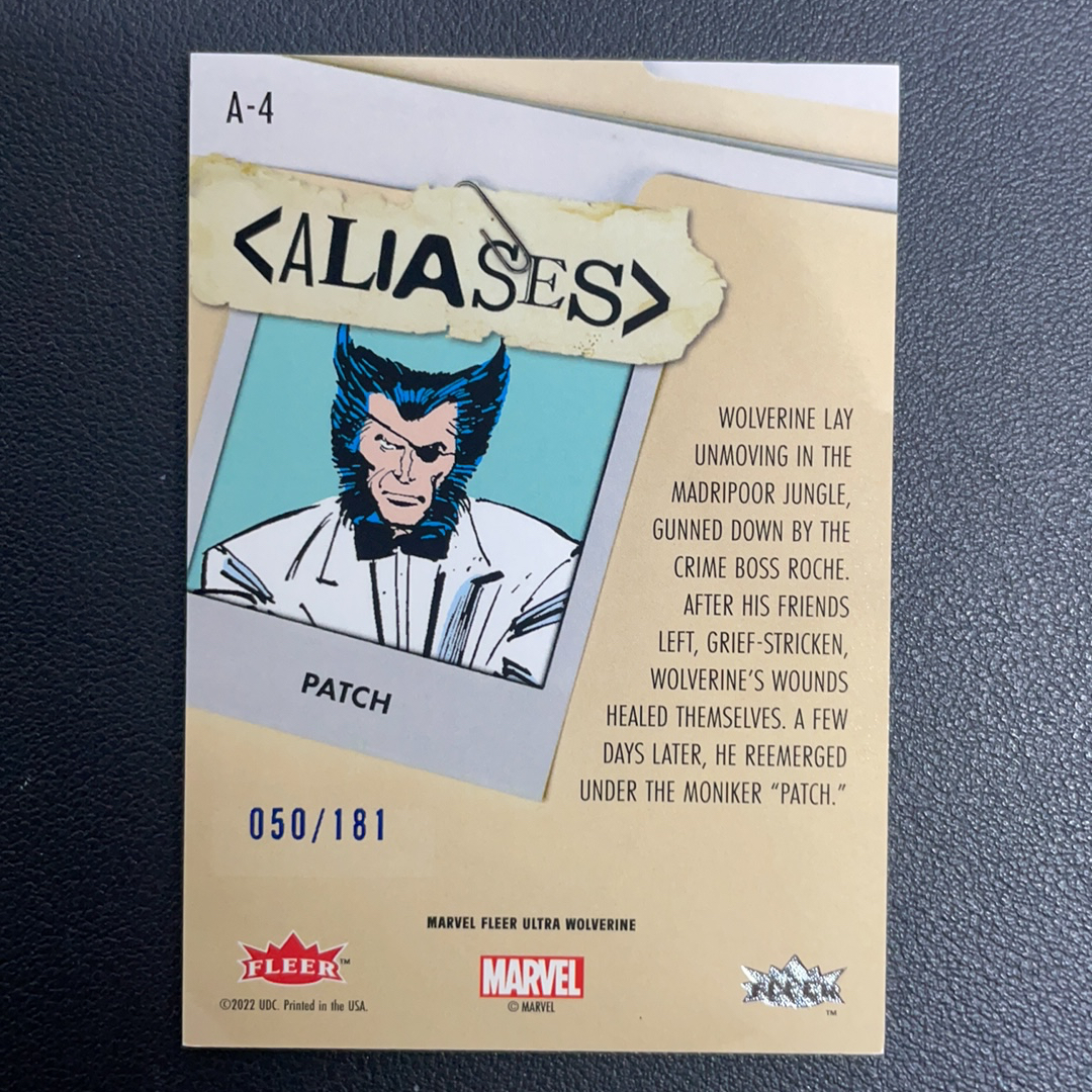 【大满拆】(段)2022 Fleer Marvel (MCU) Ultra Wolverine 漫威 patch 蓝折 #A-4 181编 Aliases 金刚狼 卡品如图