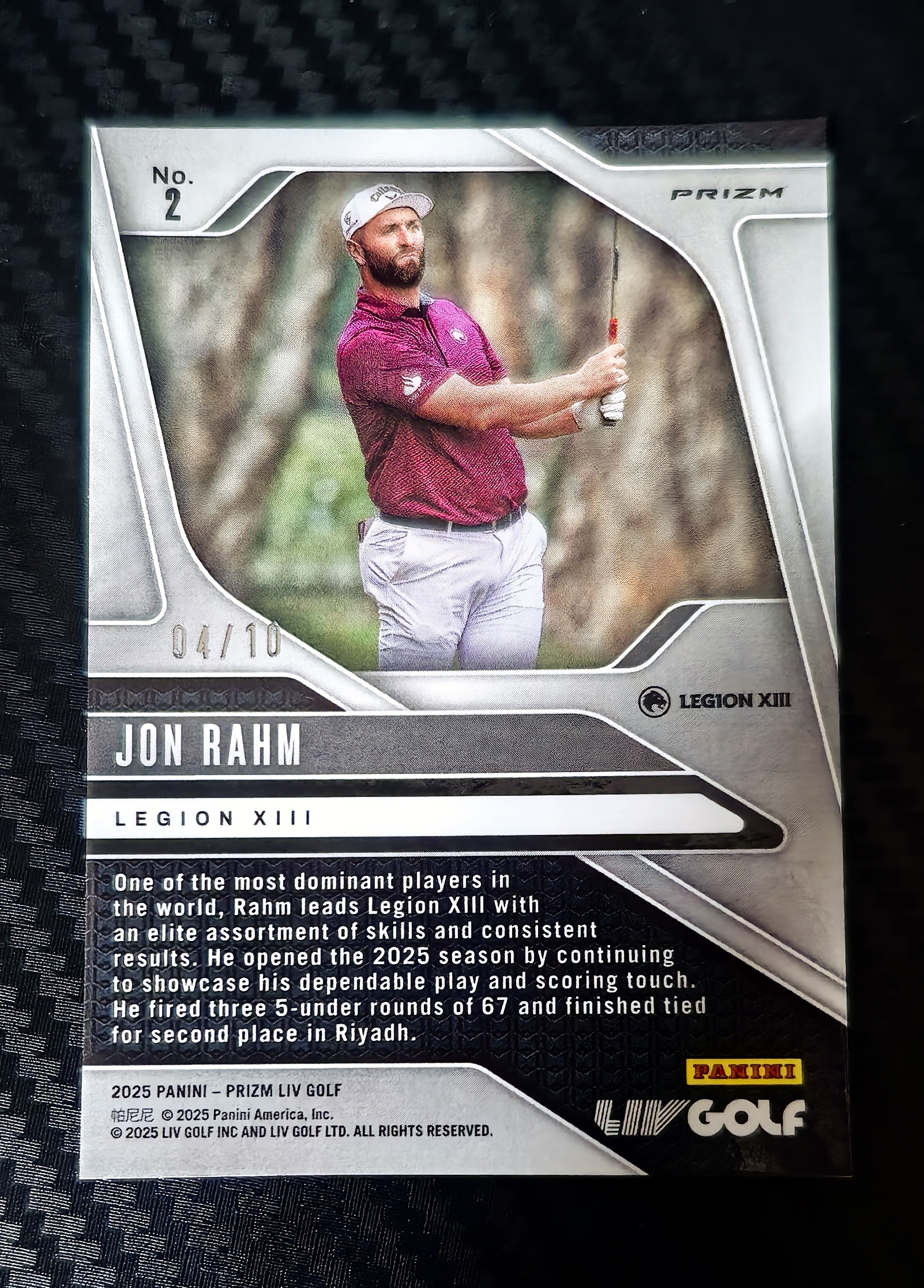 2025 Panini Prizm Liv Golf rahm Jon Rahm 高尔夫PZ 乔恩 拉姆 琼 拉姆 04/10编 金圈圈折 金折 超低编 收藏必备 微瑕 卡品如图