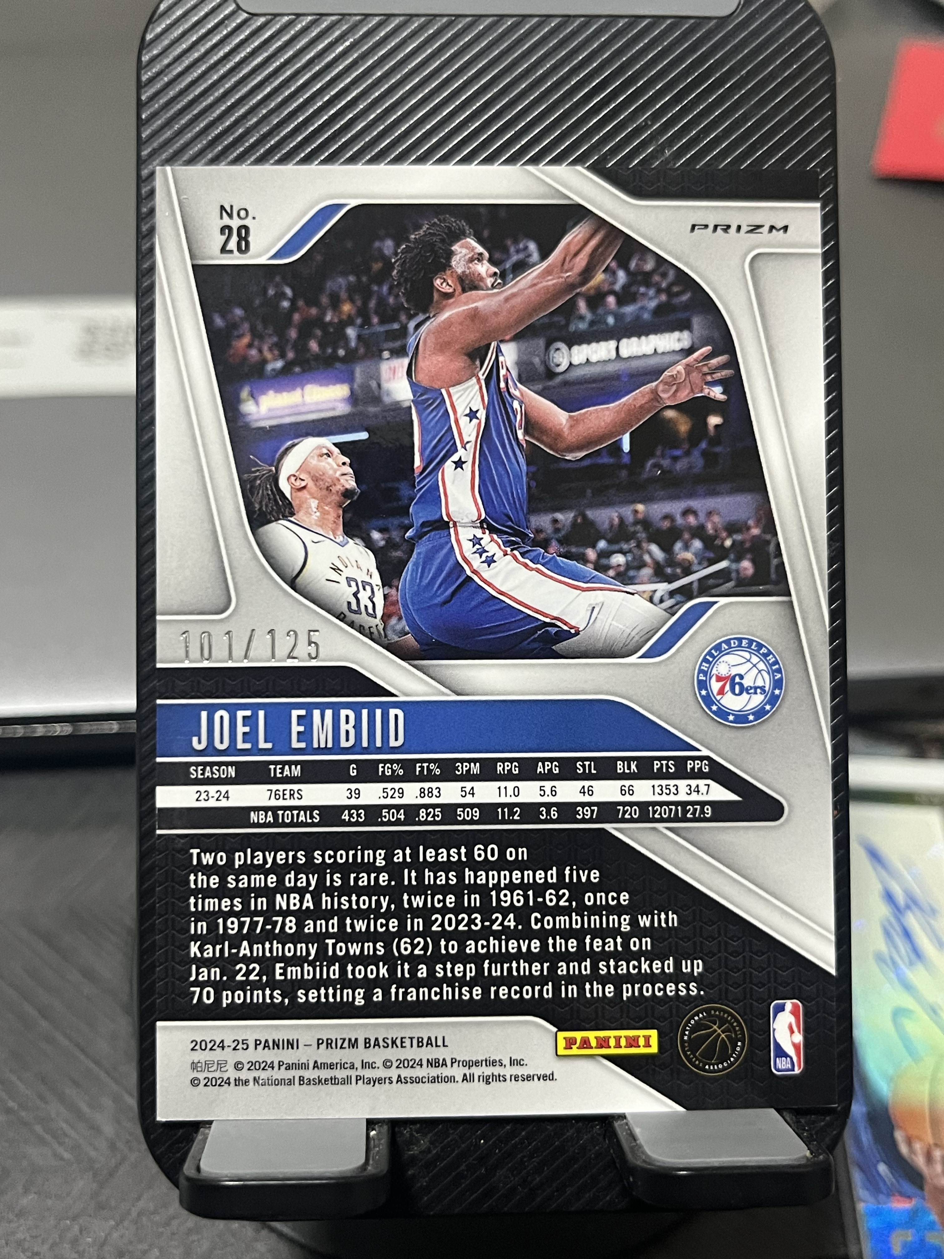 2024-25 Panini Prizm Joel Embiid pz 76人 乔尔 恩比德 /125编 蓝波纹折 折射 卡品如图