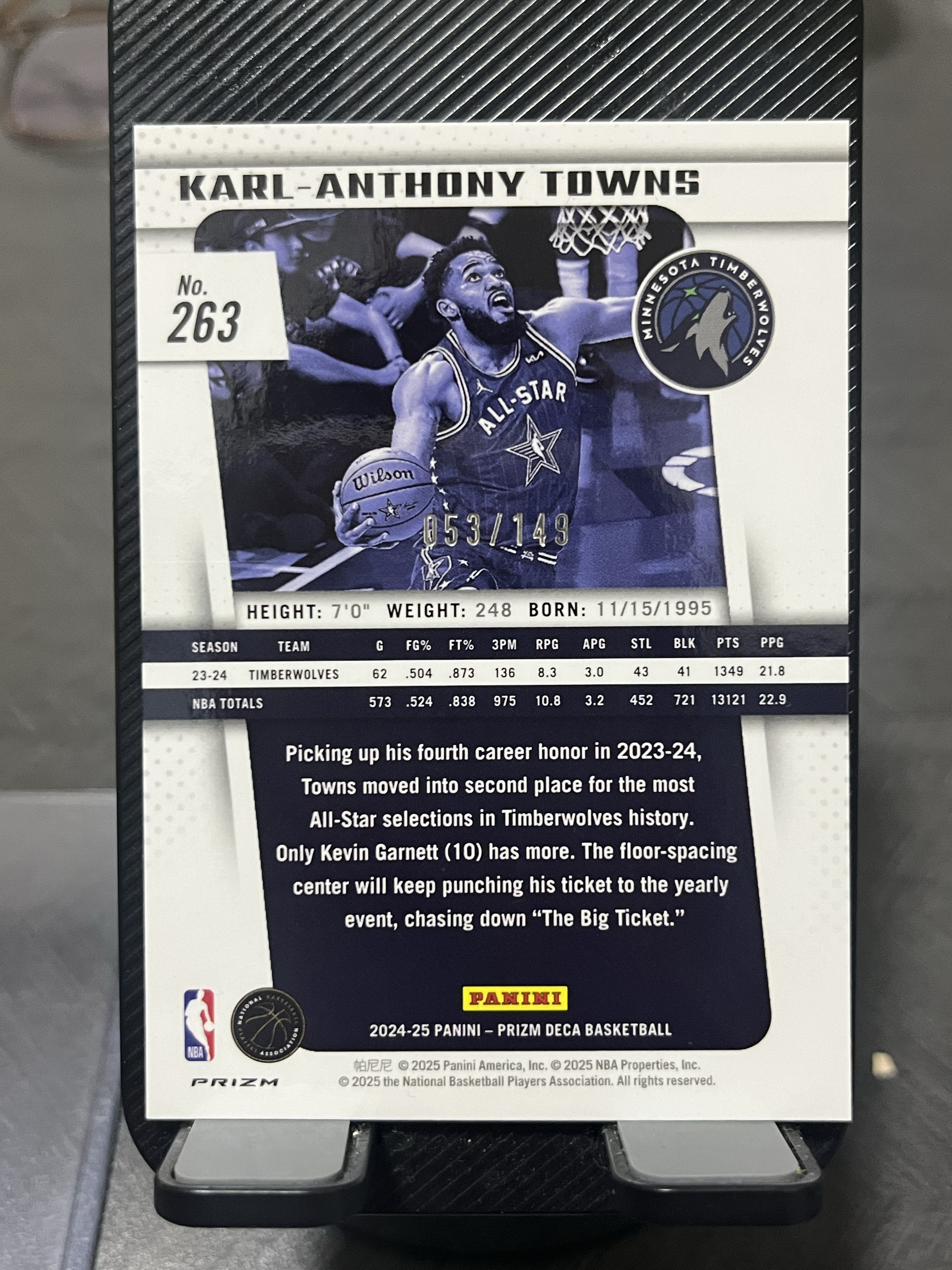 2024-25 Panini Prizm Karl Anthony Towns Deca 复刻 森林狼队 全明星 卡尔 安东尼 唐斯 全明星 149编 蓝折 折射 卡品如图