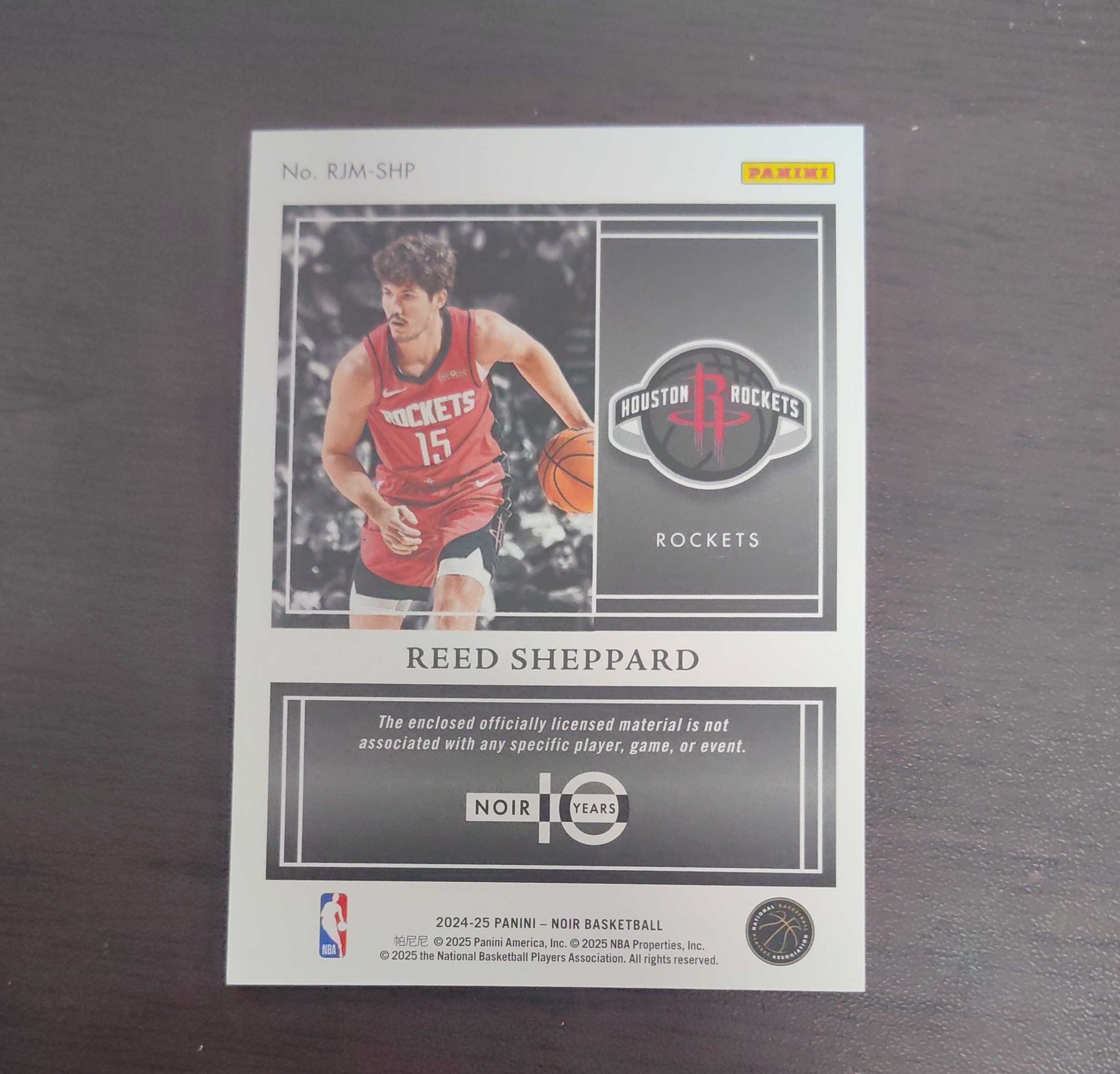 2024-25 Panini Noir Reed Sheppard RC 里德谢泼德 诺尔 99编 球衣 物料 patch 卡角小白 划痕如图 火箭 可累计