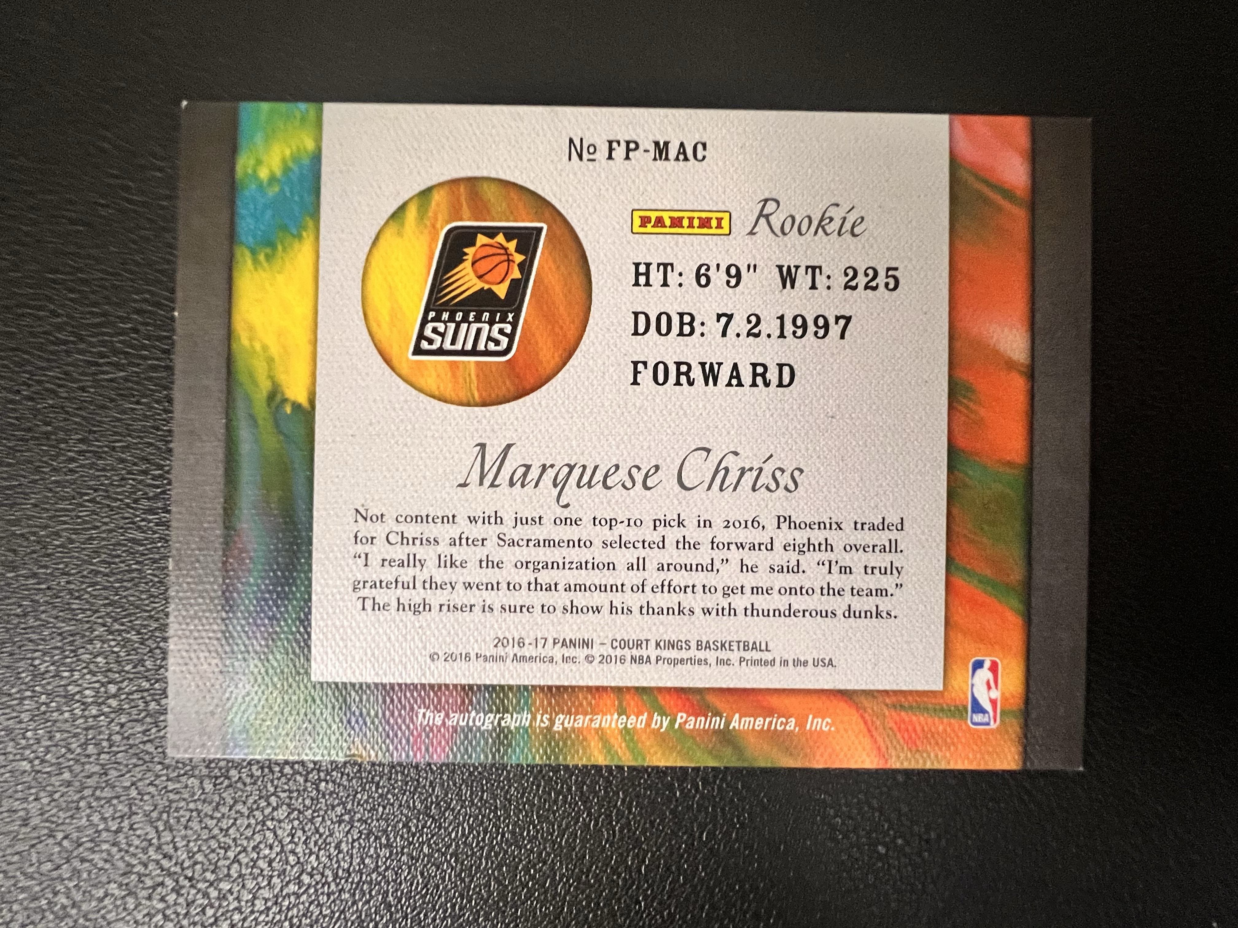 2016-17 PANINI COURT KINGS 油画系列 太阳 新秀RC 马奎斯克里斯 签字卡 卡签 FP签 卡品如图【亮