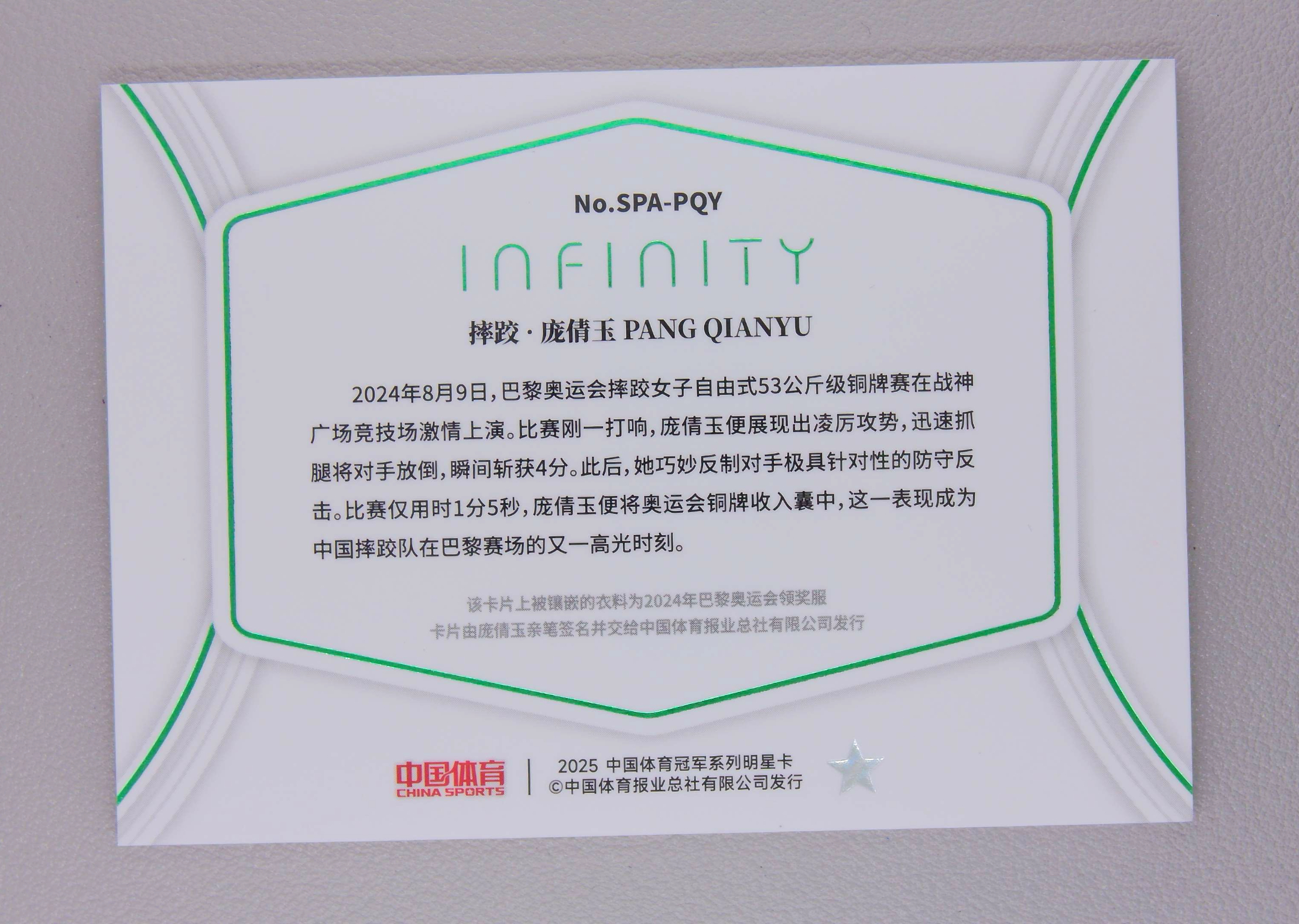 2025 中国体育 无限 pang qianyu 庞倩玉 大窗 球衣 物料 签字 卡签 5/5编 尾编 超低编 摔跤 战神无双拍卡 (Base)