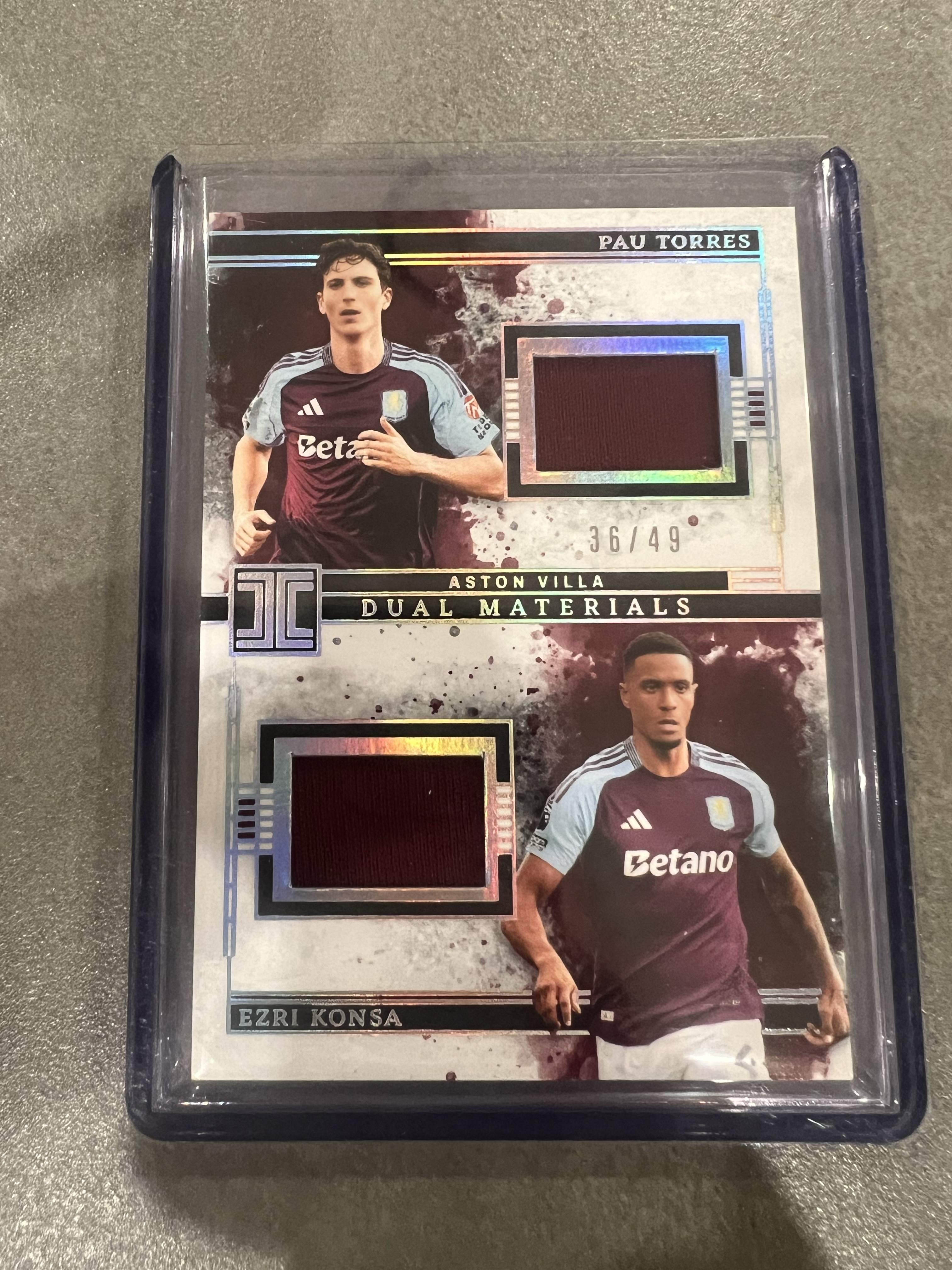 2024-25 Panini Impeccable Pau Torres 小真金 阿斯顿维拉 保托雷斯 孔萨 Ezri Konsa 双人球衣切割 /49编 收藏必备