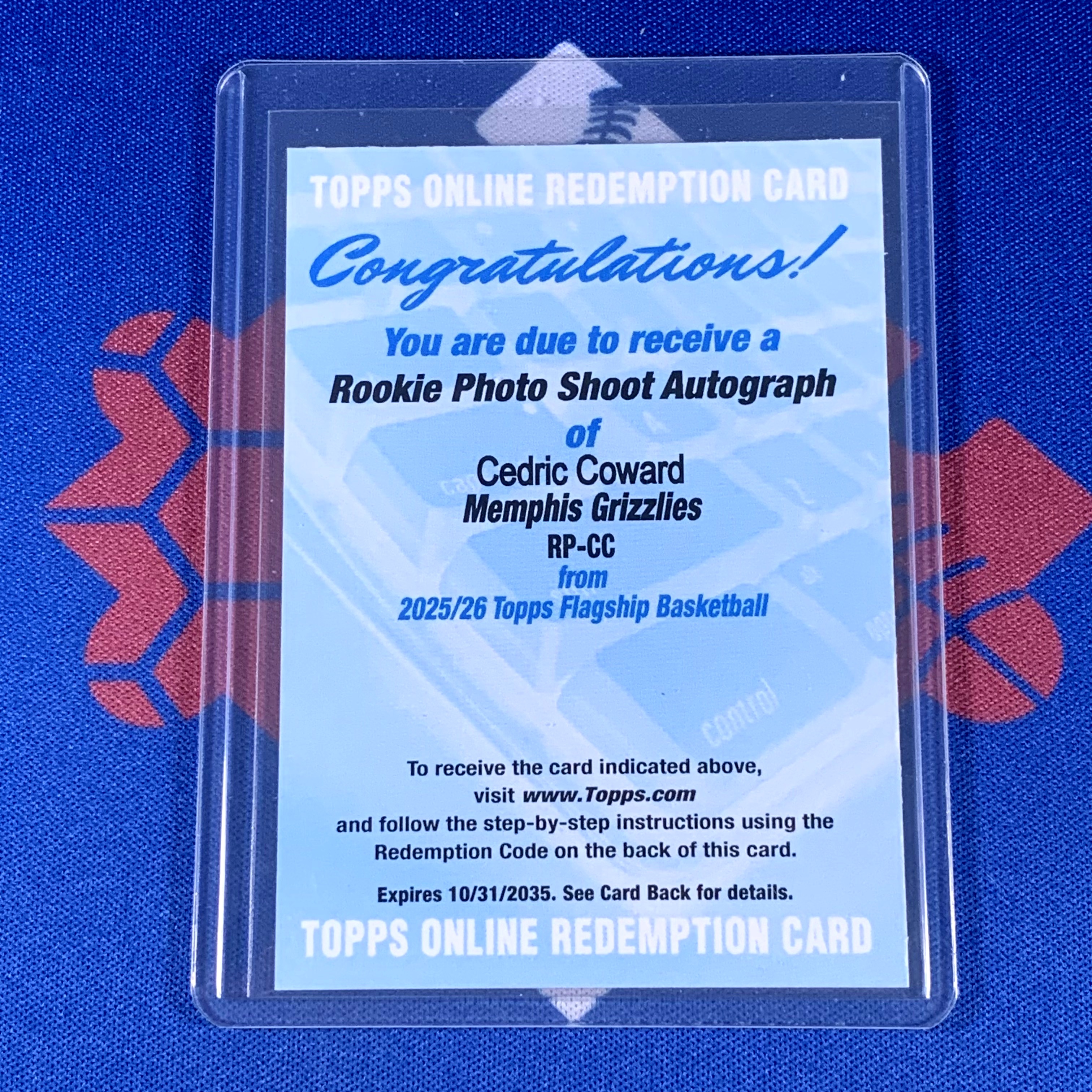 2025-26 Topps Basketball Cedric Coward 【海宝】灰熊 新秀RC 考沃德 Rookie Photo Shoot 大比例 明日签 新秀定妆照 签字卡 交换板【GX】