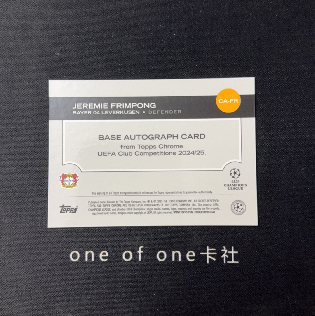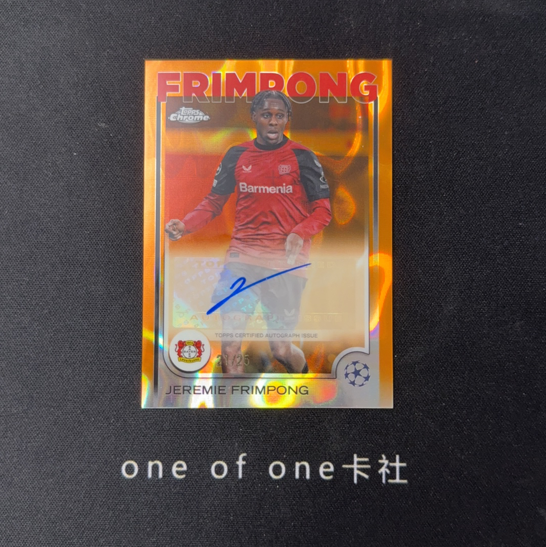 2025 Topps Chrome Jeremie Frimpong 杰里米 弗林蓬 勒沃库森 利物浦 荷兰 欧冠 TC 25编 低编 橙熔岩折 折射 签字 签名 卡品如图 佩