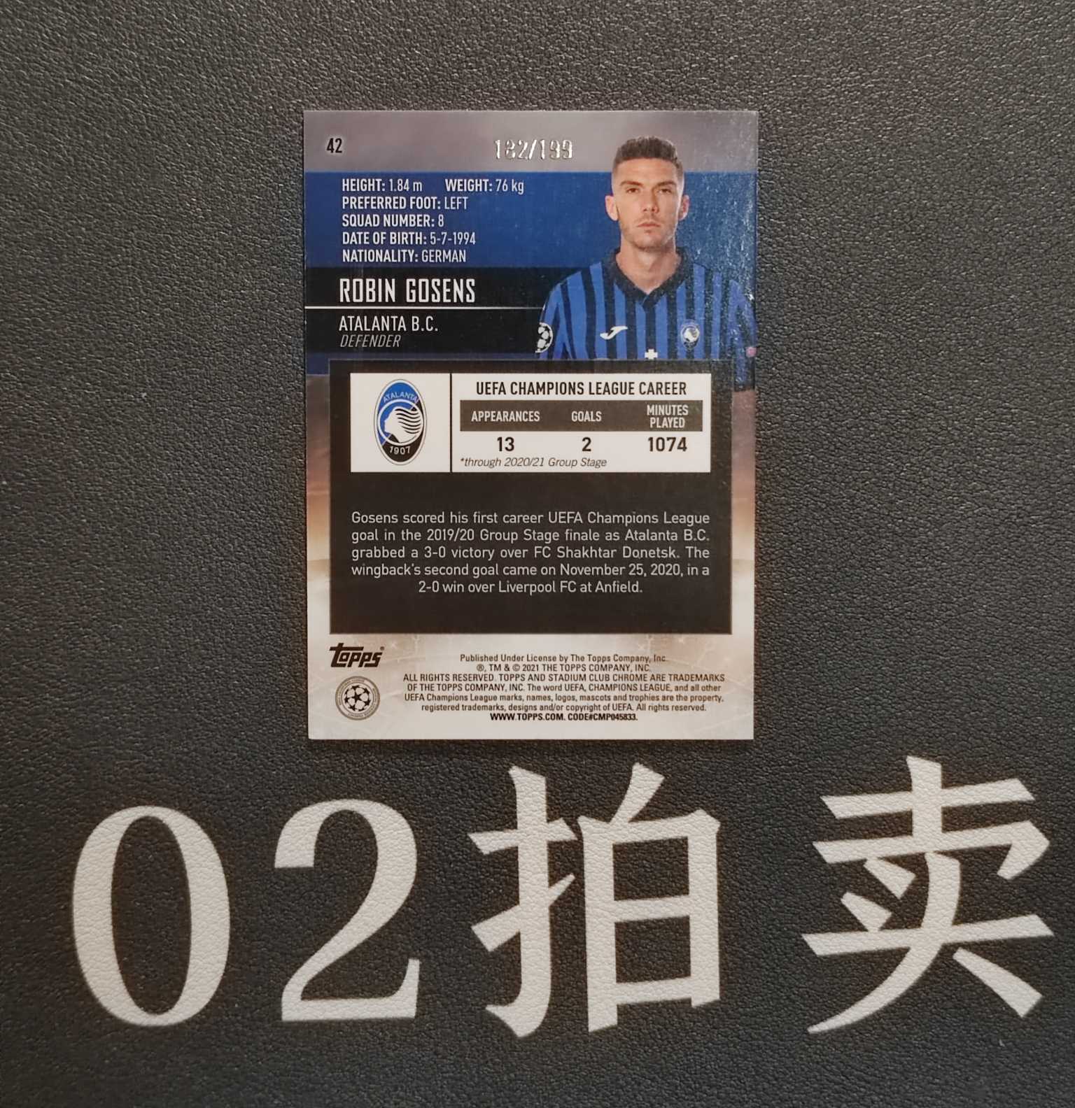2020-21 Topps Stadium Club Robin Gosens 元年竞技场 罗宾 戈森斯 132/199编 青折 亚特兰大 佛罗伦萨 国际米兰 德国 微瑕如图