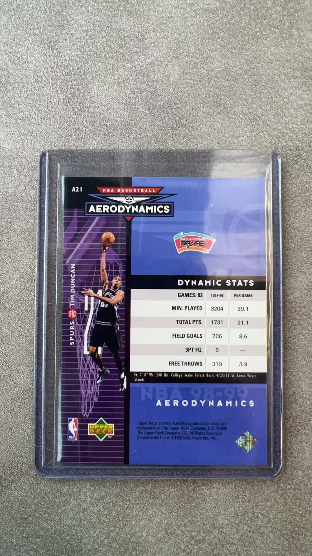 6435【330球星卡实体店代卖】1998-99 Upper Deck Aerodynamics 蒂姆 邓肯 石佛 tim duncan 马刺 蓝版 经典老特 仅顺丰寄付(UK23)