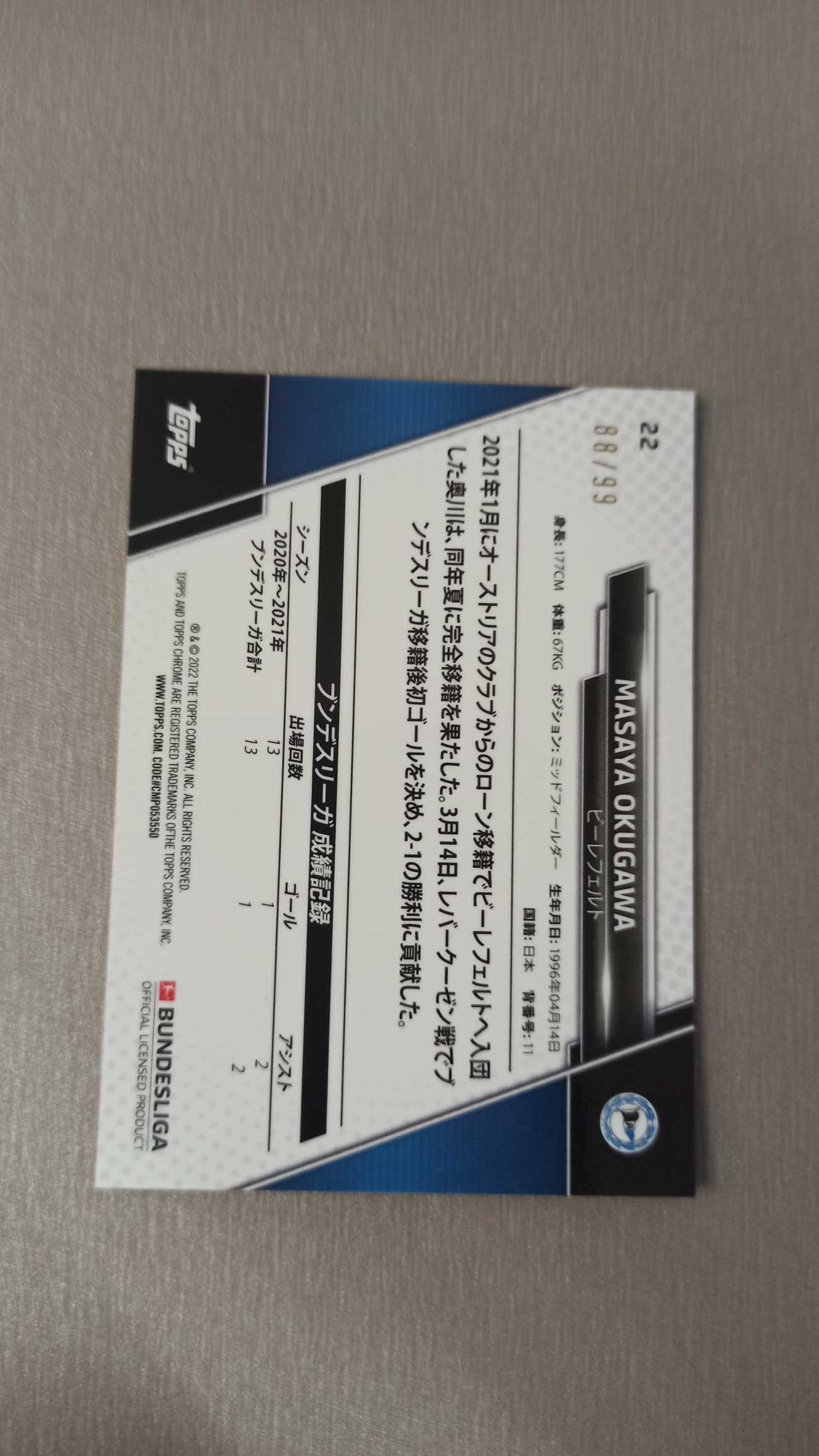 2022 Topps Chrome Bundesliga Japan Masaya Okugawa 88/99编 奥川雅也 卡品如图 收藏必备 卡默认都有瑕疵白边 介意勿拍