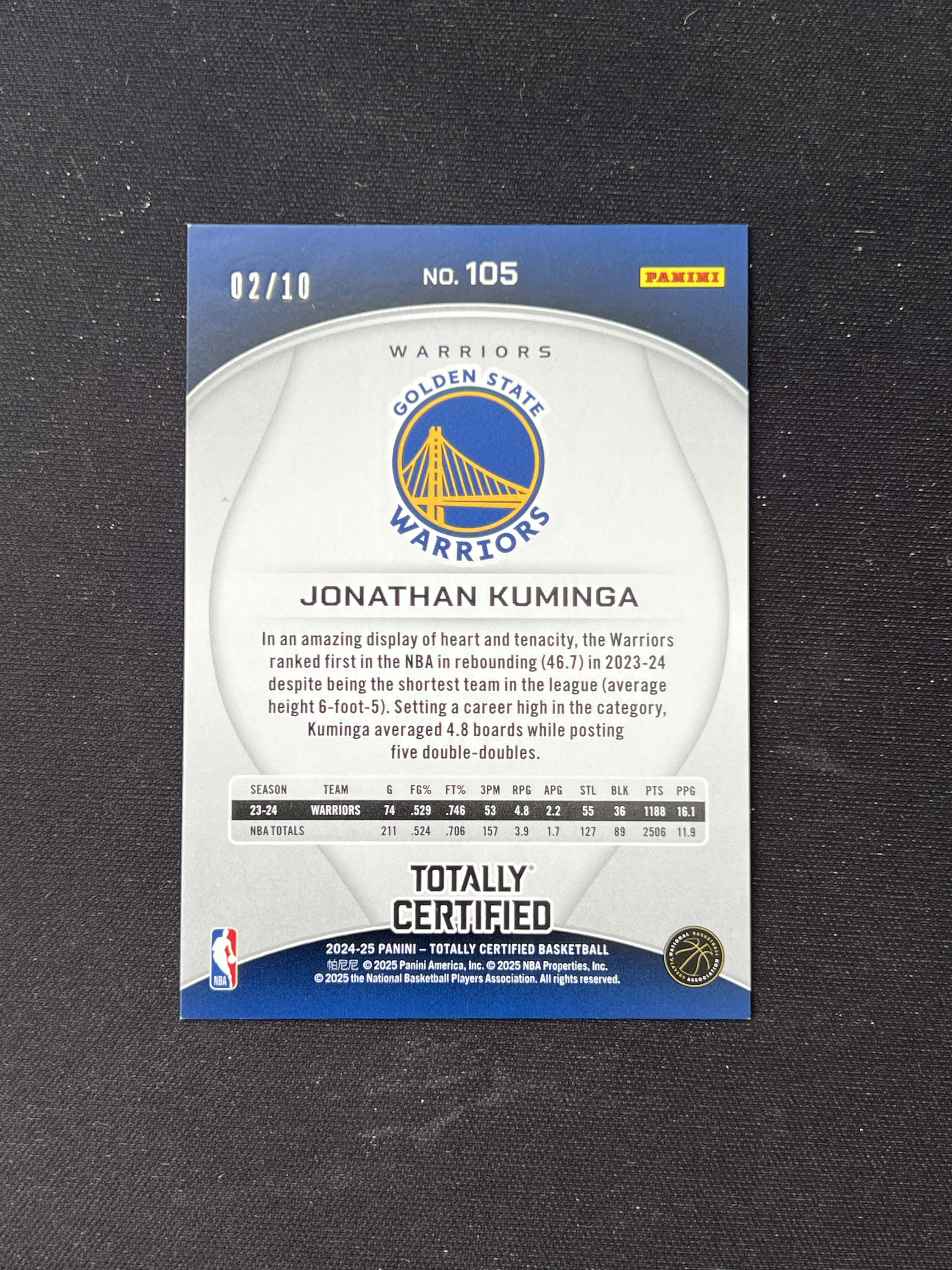 2024-25 Panini Totally Certified Jonathan Kuminga 【果冻代卖】 勇士队 乔纳森 库明加 卫生巾 10编 金折 折射 【兴趣使然】 30