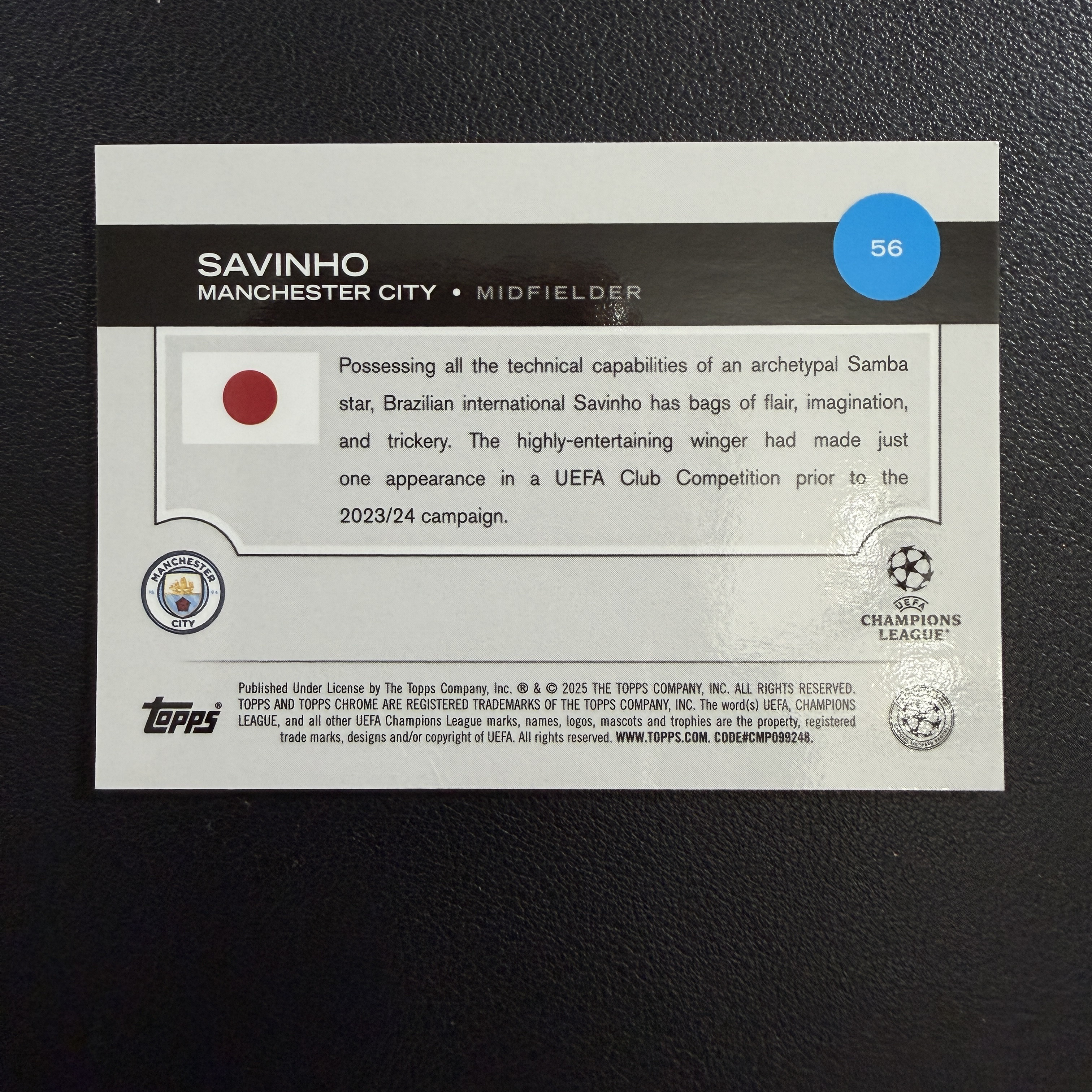2024-25 Topps Chrome Savinho 欧冠TC 日版 樱花 曼城 萨维尼奥 150编 黄mojo折 带编折射 有膜无夹不保卡品 专收凑套必备 李格巴