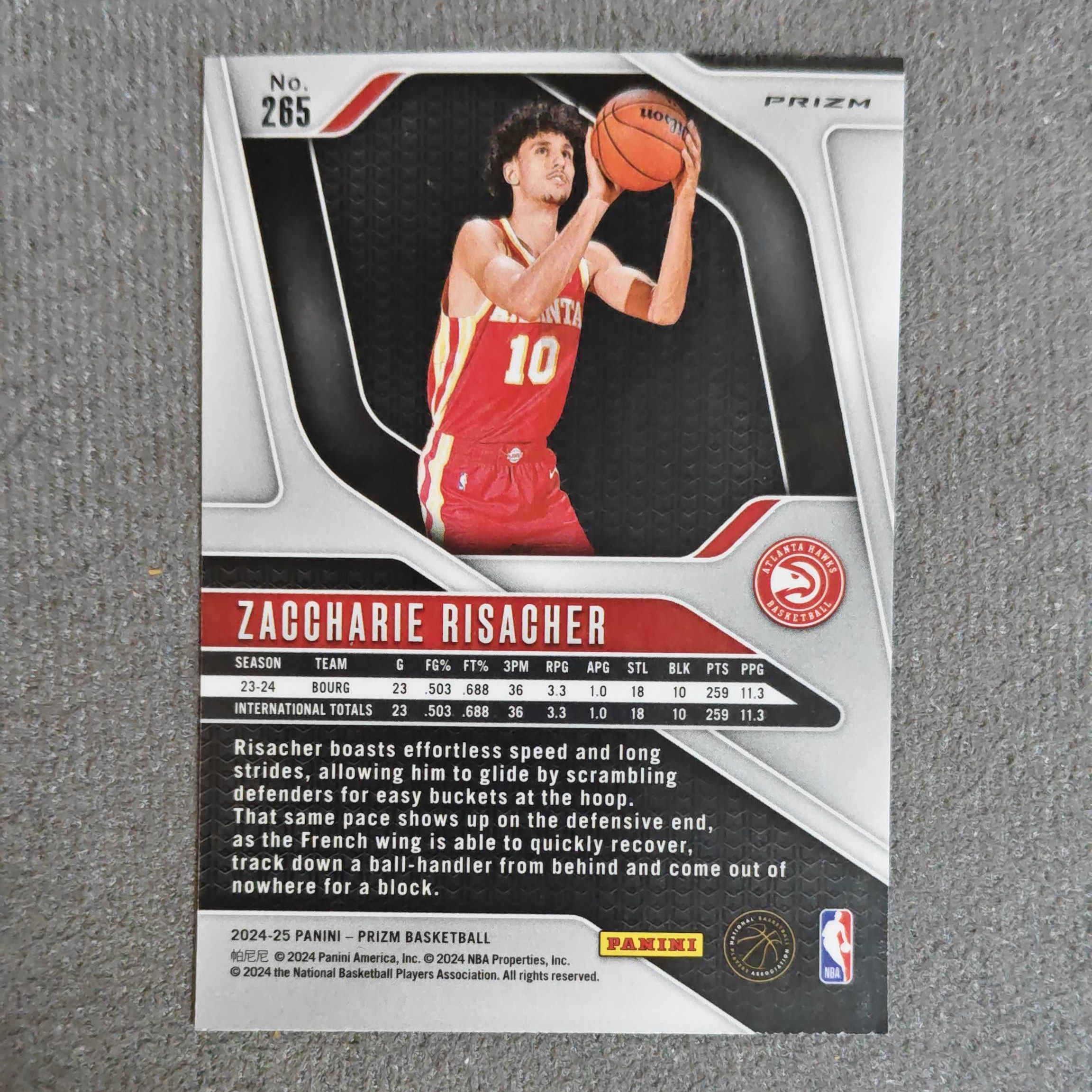2024-25 Panini Prizm Zaccharie Risacher RC Prizm 扎卡里 里萨谢 状元郎 粉碎冰折 RC 新秀 老鹰卡角微瑕