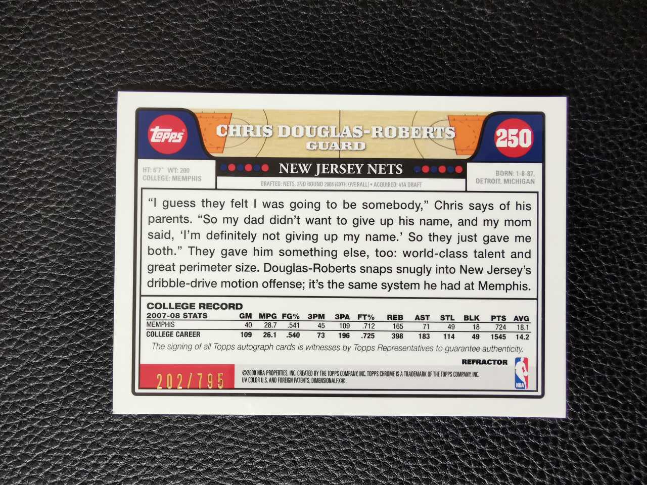 【金矿拍卖】2008 topps Chrome rookie card 篮网新秀rc 克里斯道格拉斯罗伯茨 Chris douglas roberts 签字 折射 202/795编 小天