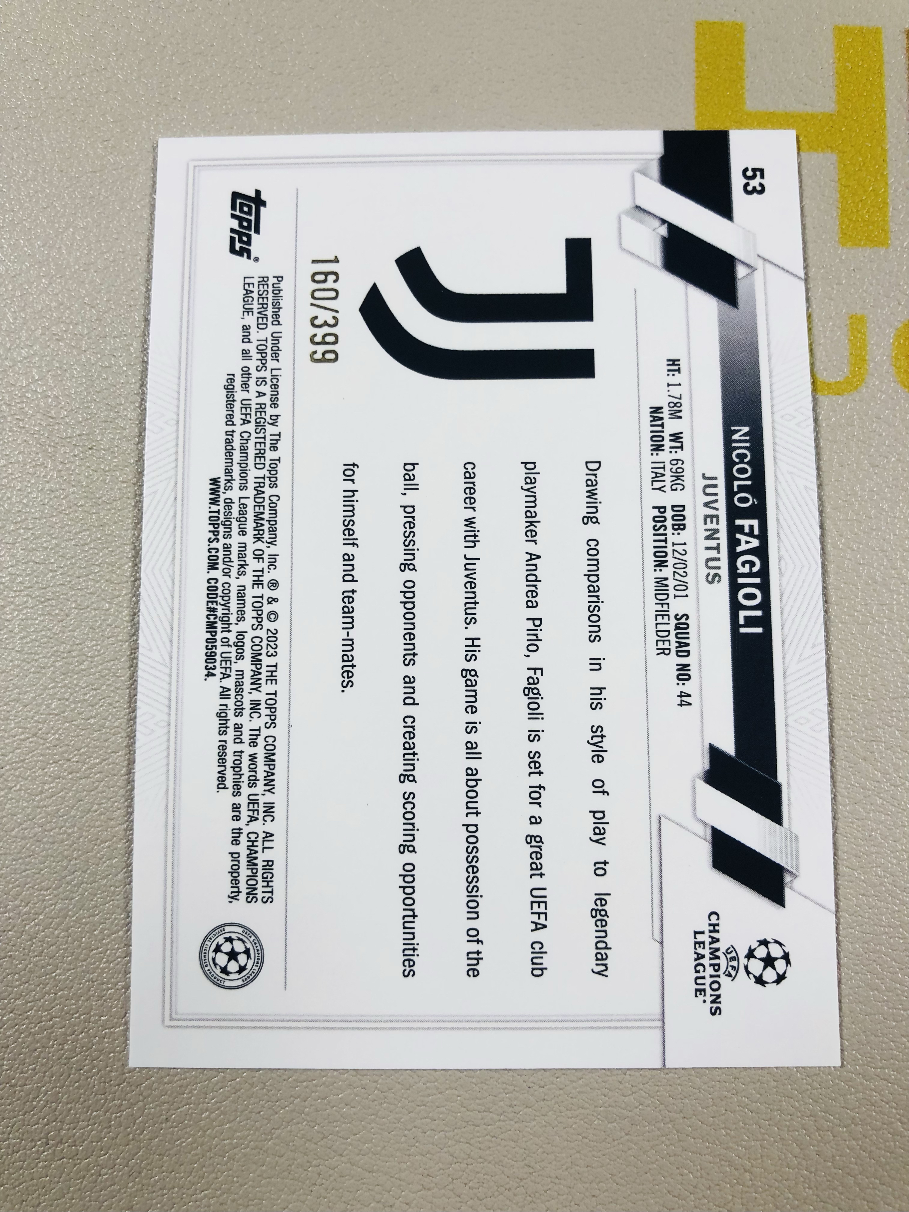 2023 Topps UCC Nicolò Fagioli RC 欧冠 UCC 新秀 尤文图斯 法焦利 160/399编 单卡低于10元无卡夹介意勿拍 钢子1113