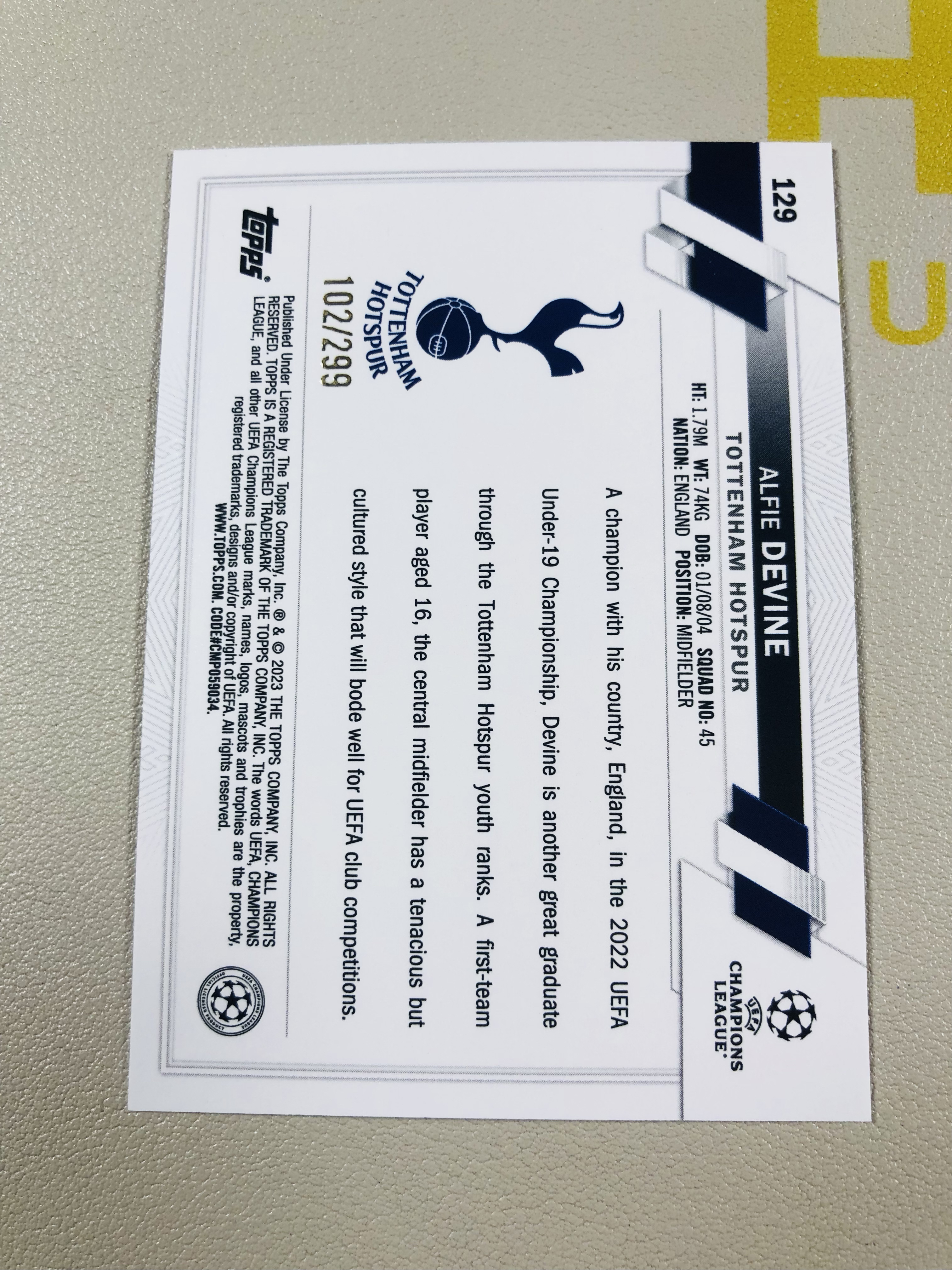 2023 Topps UCC Devine RC 欧冠 UCC 新秀 热刺 迪瓦恩 102/299编 单卡低于10元无卡夹介意勿拍 钢子1113