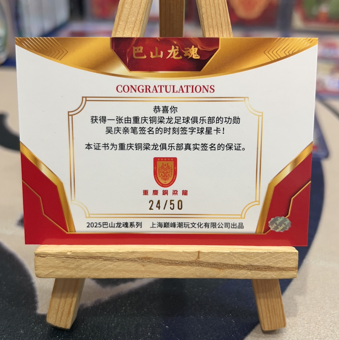 2025 巅峰潮玩 巴山龙魂 吴庆 【耳朵卡社】巅峰潮玩 2025 重庆铜梁龙队盒 巴山龙魂 银折 时刻 签字卡 金笔 卡签 低编 24/50编 吴庆 两江竞技 力帆 领队 功勋 名宿 sollent