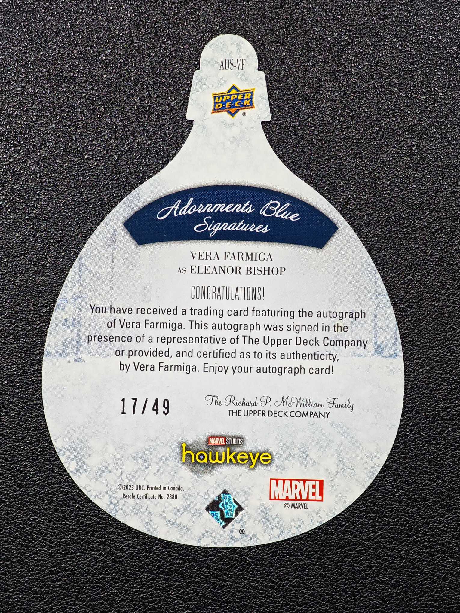 2023 Upper Deck Marvel (MCU) 漫威影视鹰眼系列 Eleanor Bishop 维拉·法梅加(Vera Farmiga)演员亲签 大比例异形签17/49编 字迹清晰 收藏必备