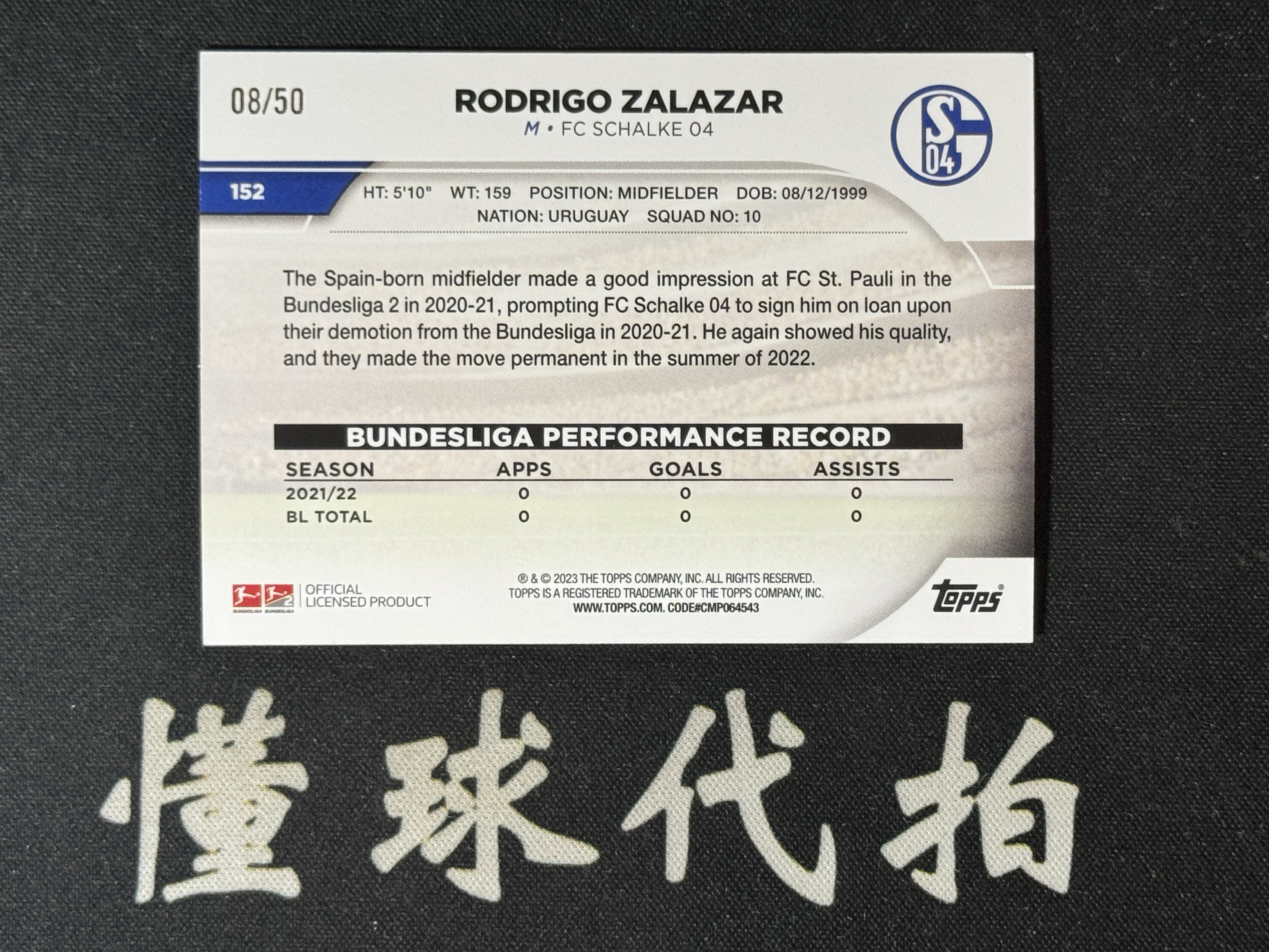 【懂球代拍】2022-23 topps 德甲碧玉 限量 50编 RC新秀 RODRIGO ZALAZAR萨拉萨尔 沙尔克04 金折折射 值得收藏 DQ078D 006