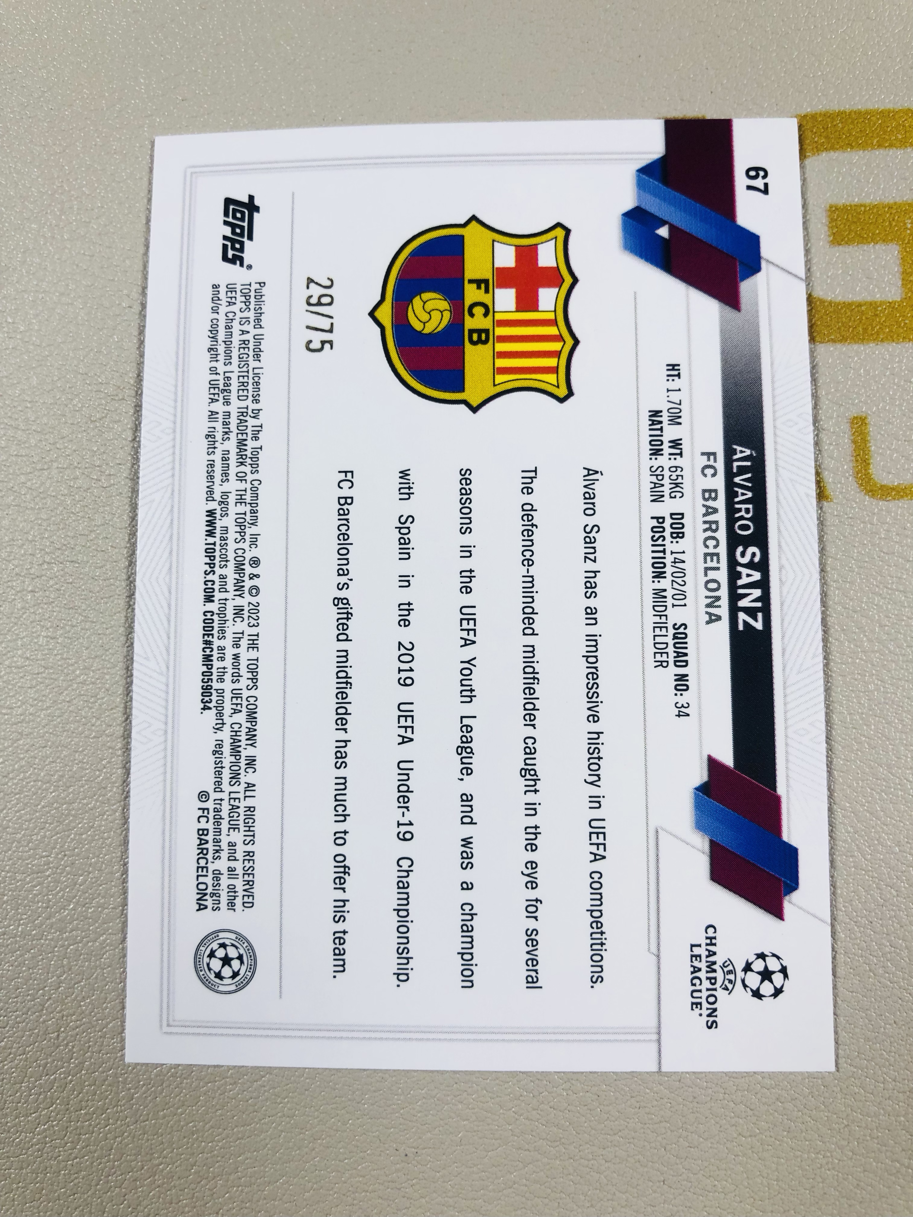 2023 Topps UCC Álvaro Sanz RC 欧冠 UCC 巴塞罗那 新秀 桑斯 75编 单卡低于10元无卡夹介意勿拍 磁铁1113