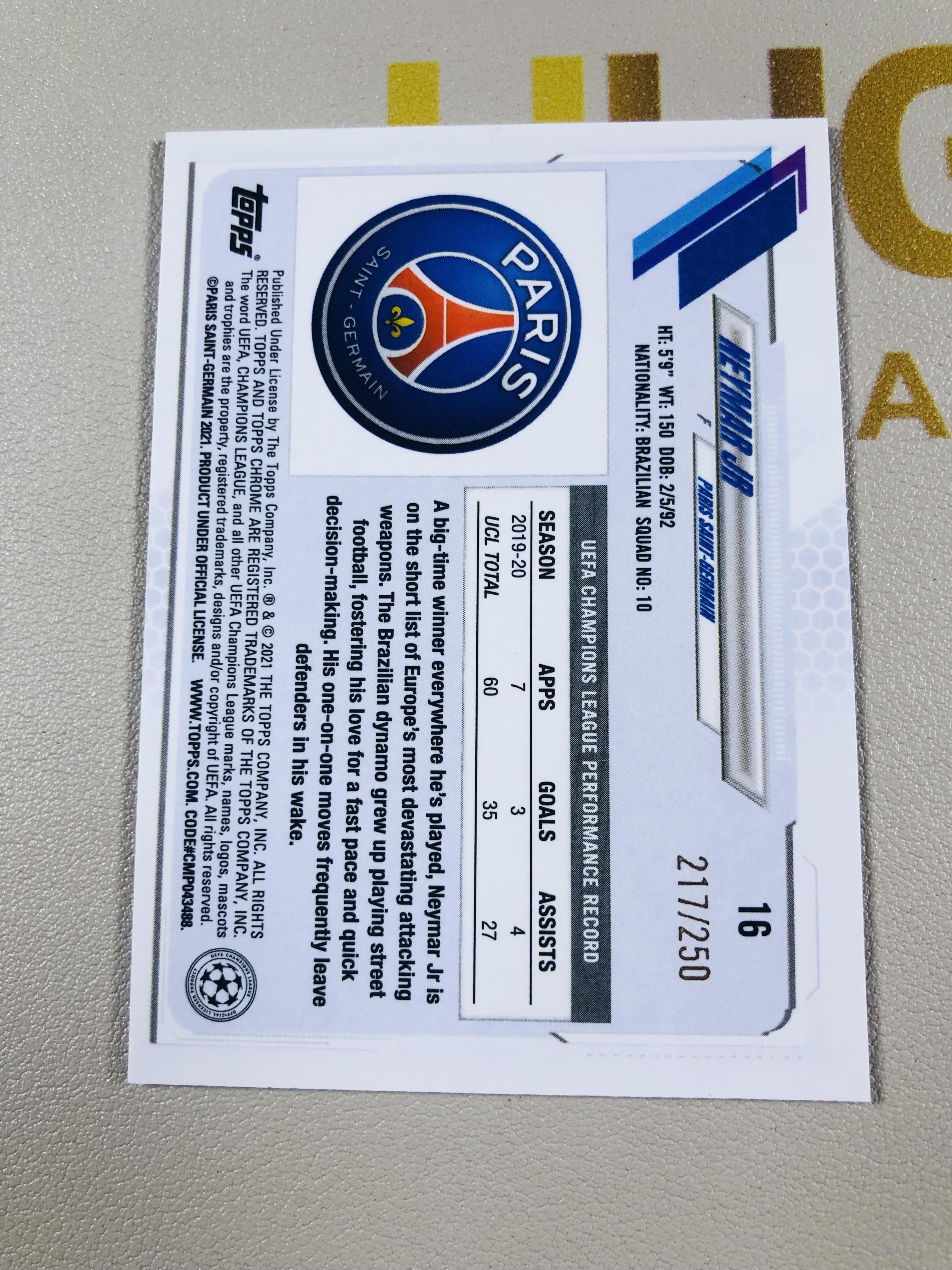2021 Topps Chrome Neymar Jr 欧冠 Chrome 巴黎圣日耳曼 内马尔 250编 单卡低于10元无卡夹介意勿拍 磁铁1113