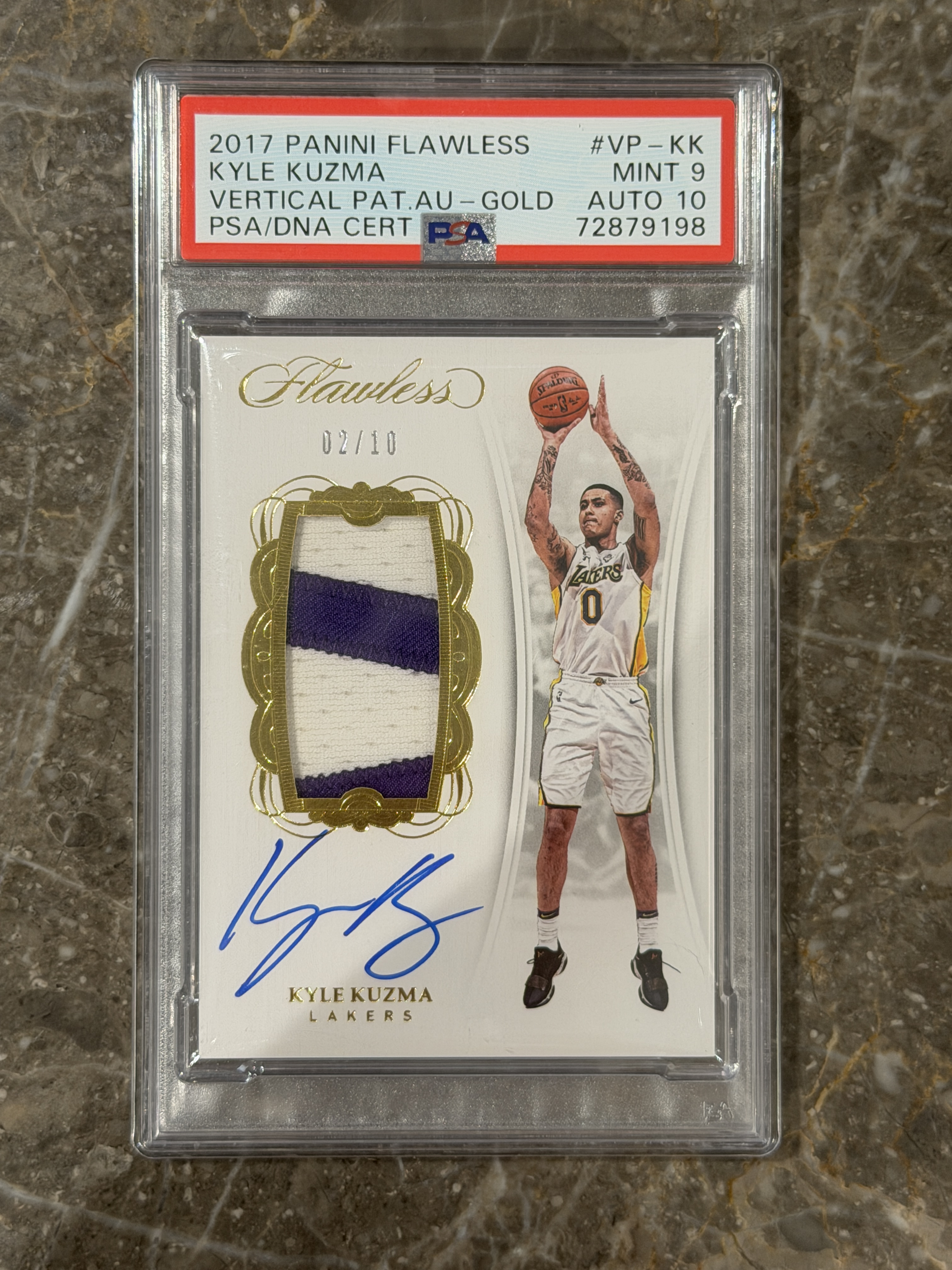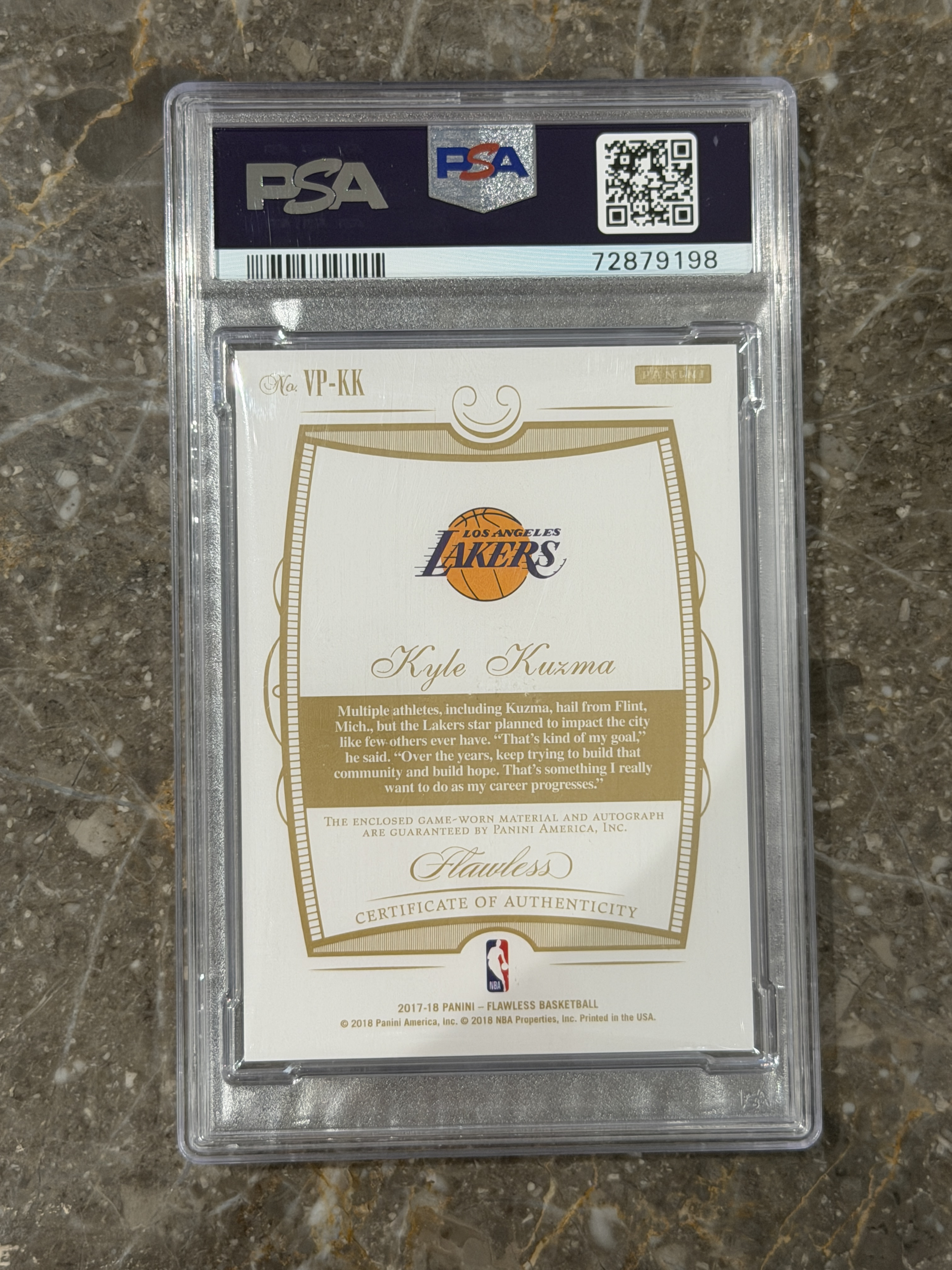 2017-18 Panini Flawless Kyle Kuzma RC 凯尔 库兹马 新秀 湖人 02/10编 签字 卡签 球衣切割 三色切割 VPA RPA PSA9➕签字10 POP1 金折