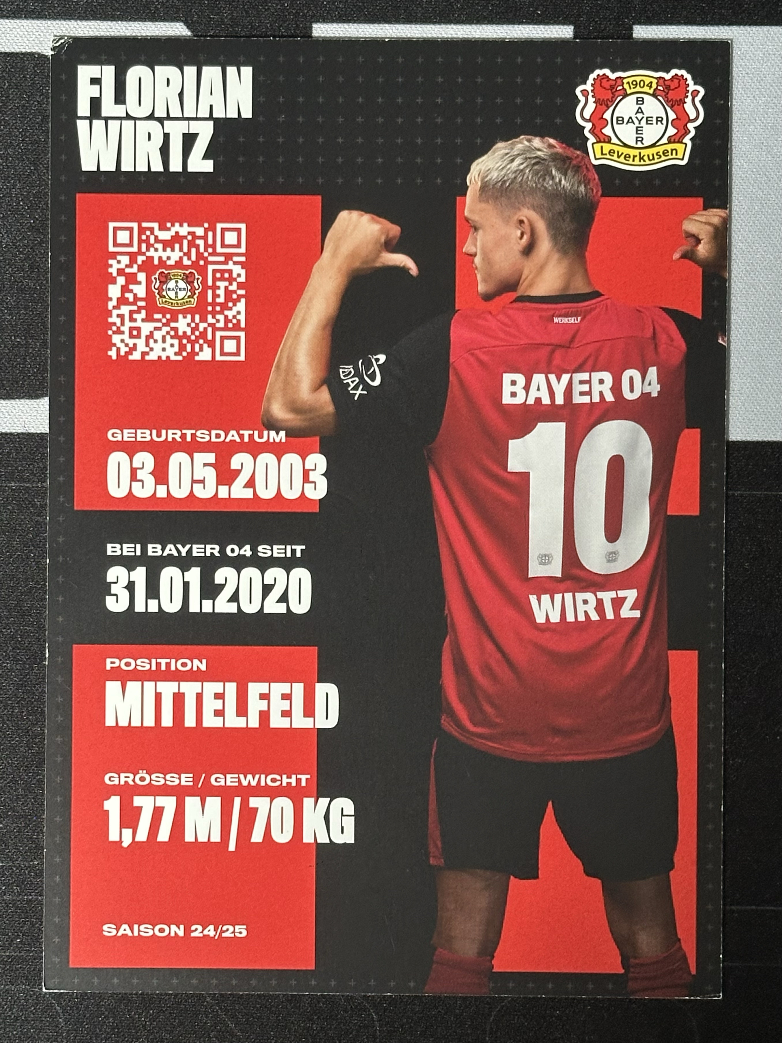 【怪兽免费代卖】 2024-25 勒沃库森 官方俱乐部明信片 Florian Wirtz 维尔茨 利物浦 回信 签字 签名 卡签 亲签 信虫签 得物鉴定真迹 不保卡品 tc107